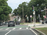 Memorial Drive continues to the west. There is a traffic light at North Harvard Street.