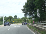 The roadway splits here. Bear right to stay on US 3/MA 16. Straight ahead, MA 2 splits off to the west as an expressway called Concord Turnpike.
