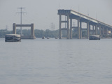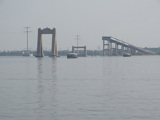 These pictures show the Francis Scott Key Bridge as it appeared after the collapse but before work began to demolish the remnants of the bridge, as observed from Fort Armistead Park.
