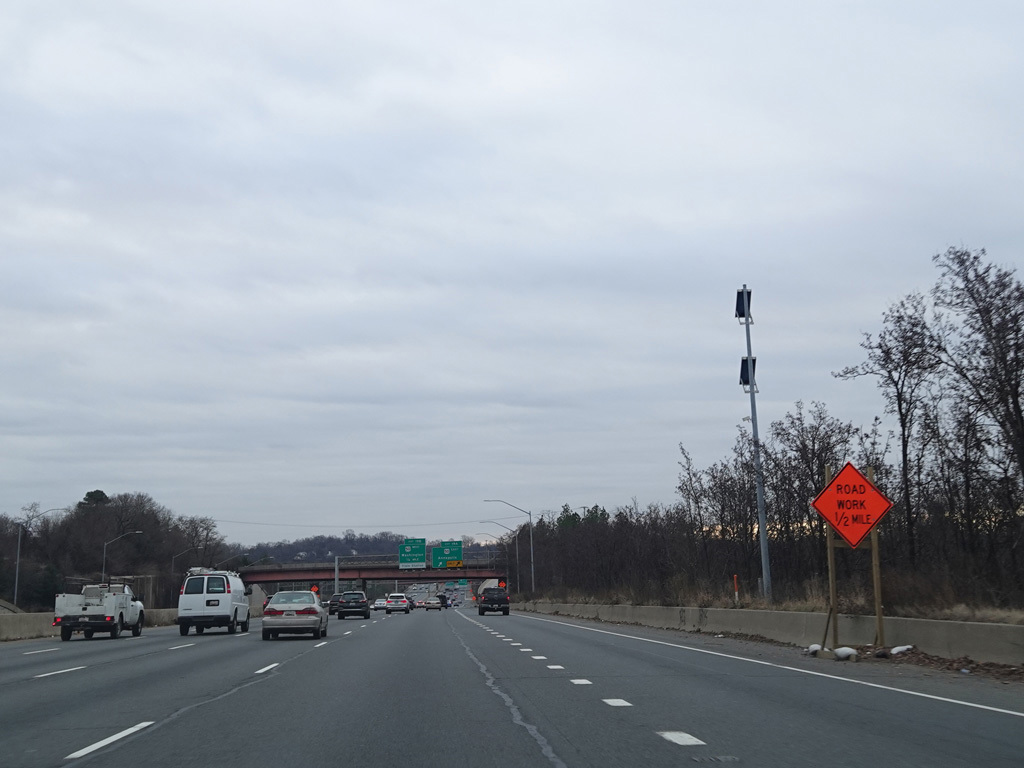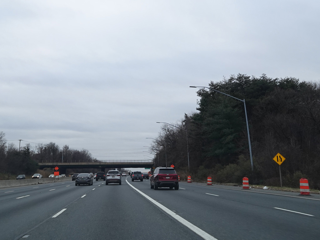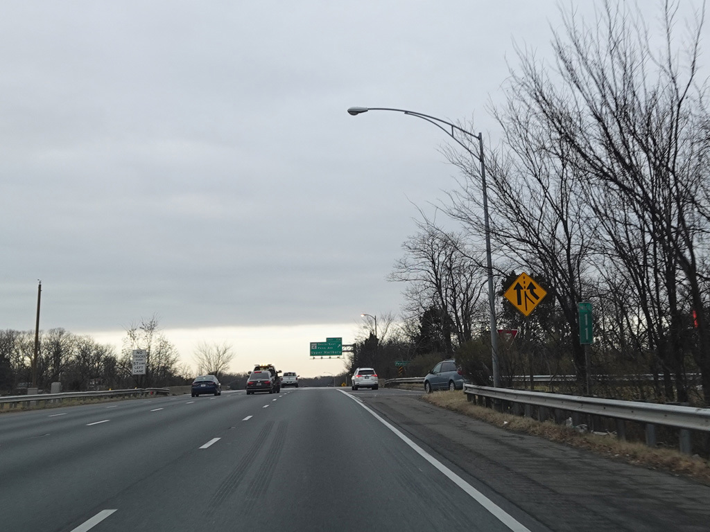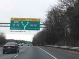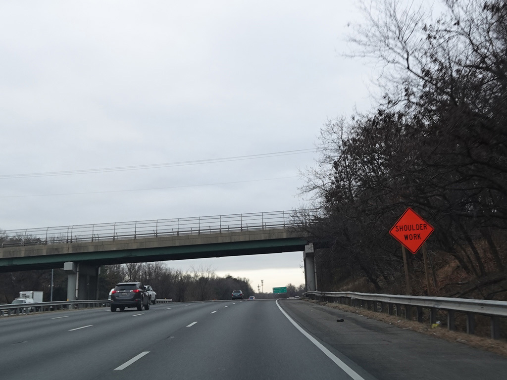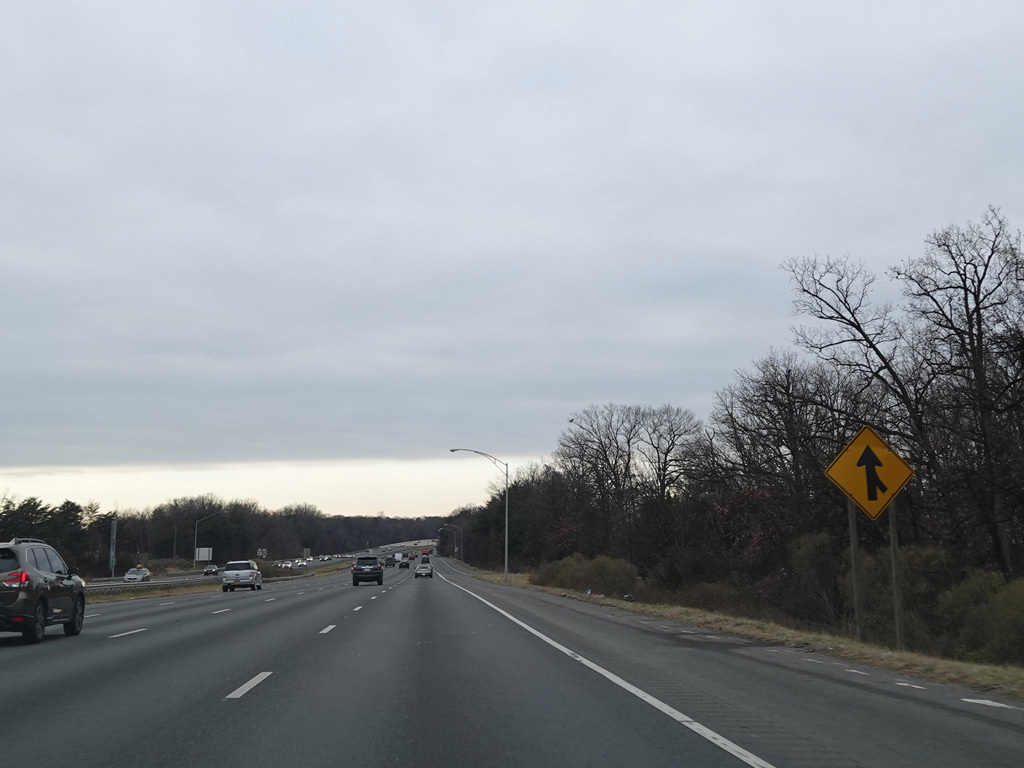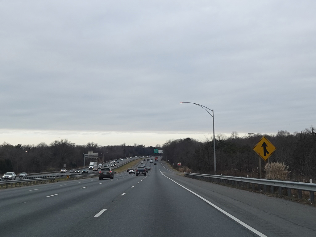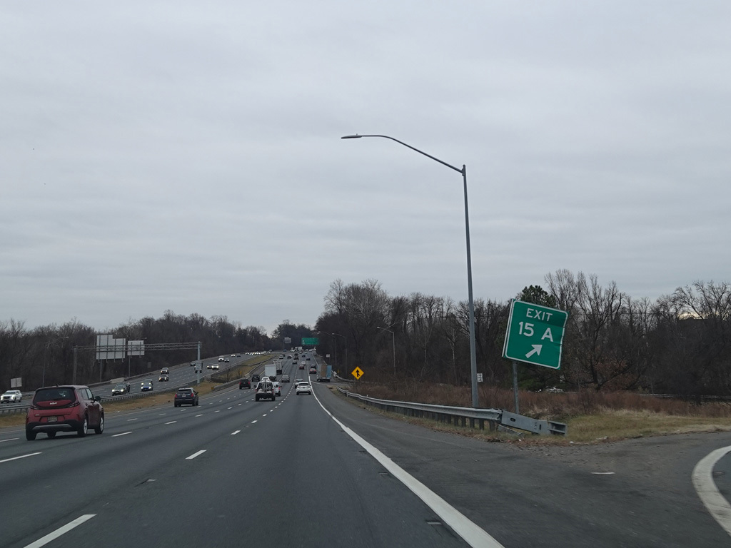 The Beltway splits into two sets of lanes. Bear right for access to exits 17-16. Through traffic may use either set of lanes.
