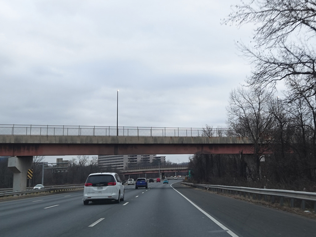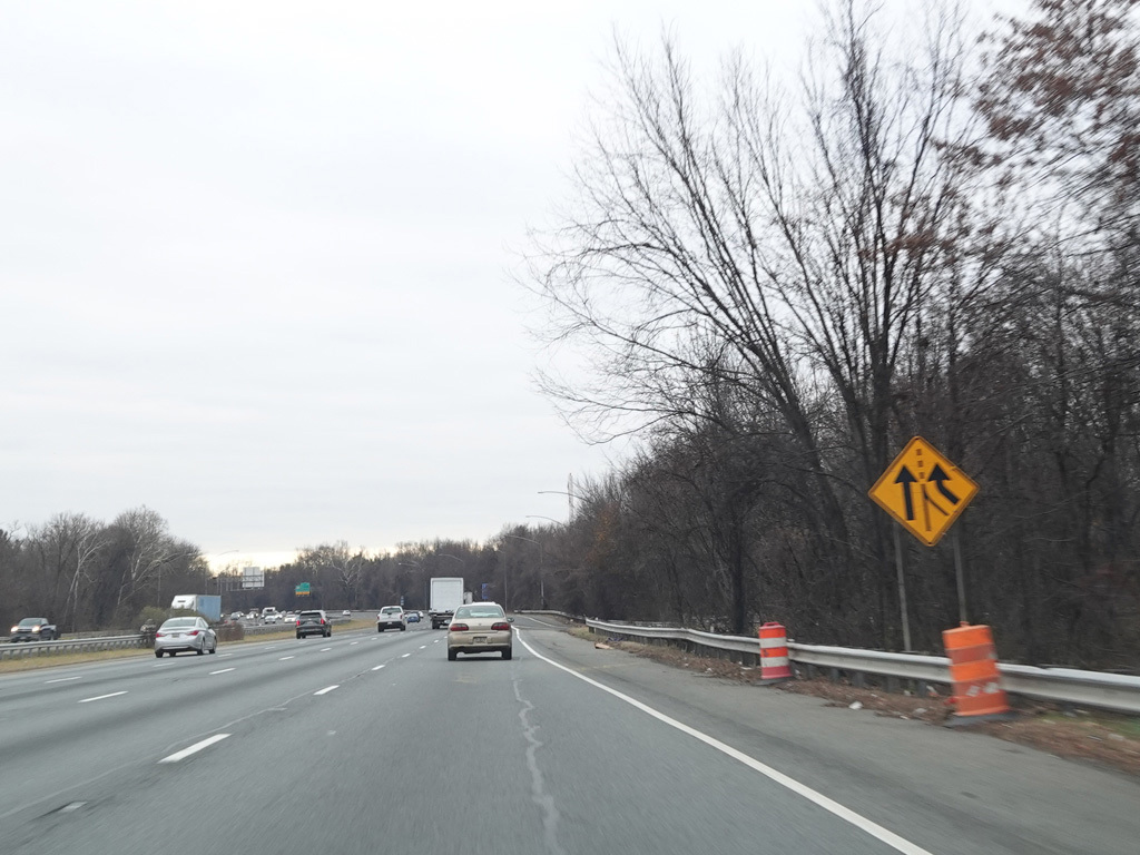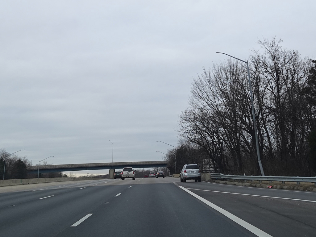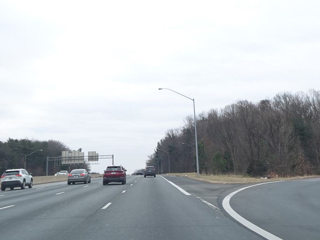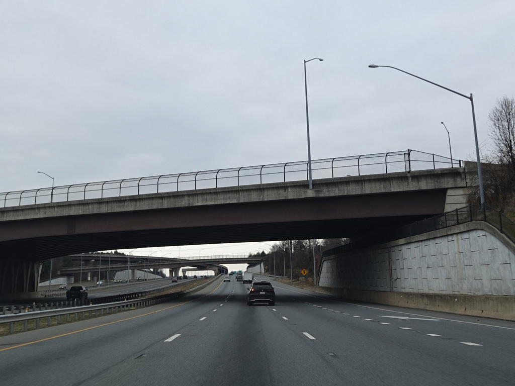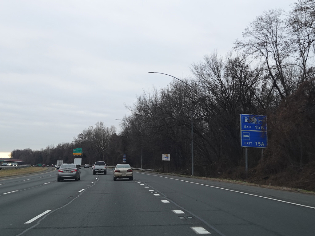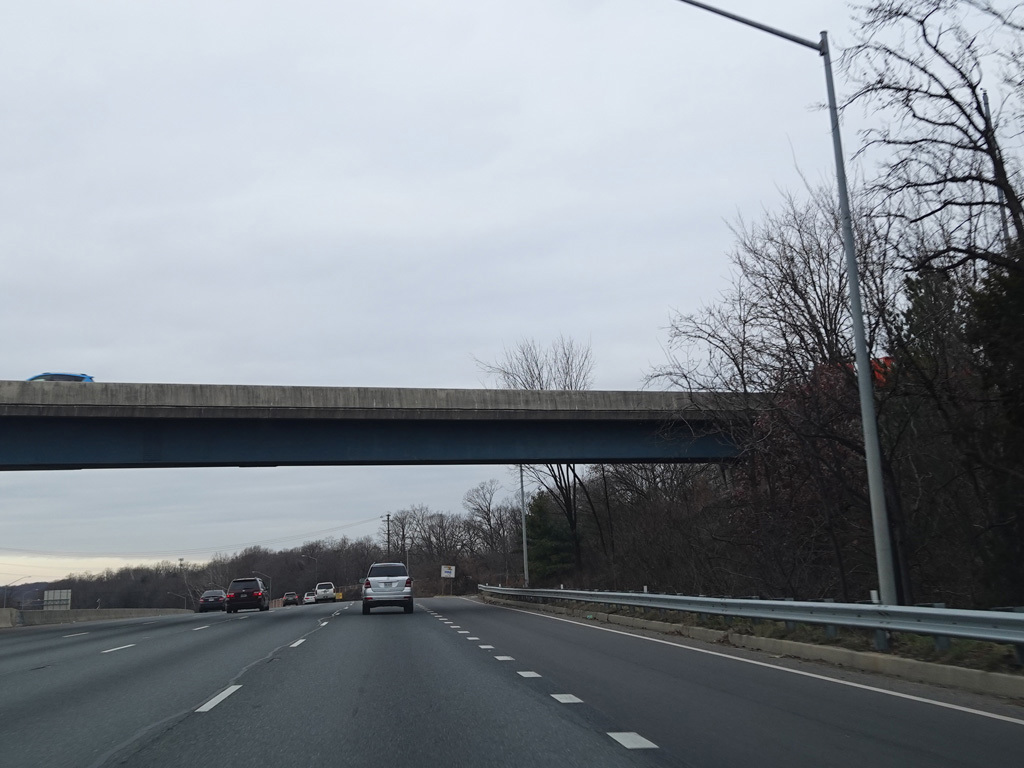 The Beltway splits into two sets of lanes. Bear right for access to exits 17-16. Through traffic may use either set of lanes.