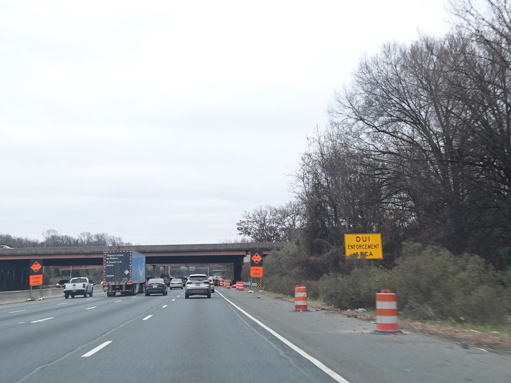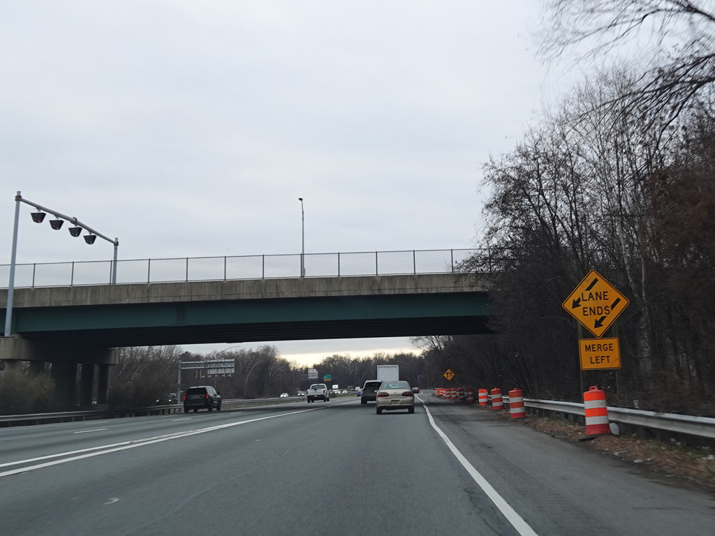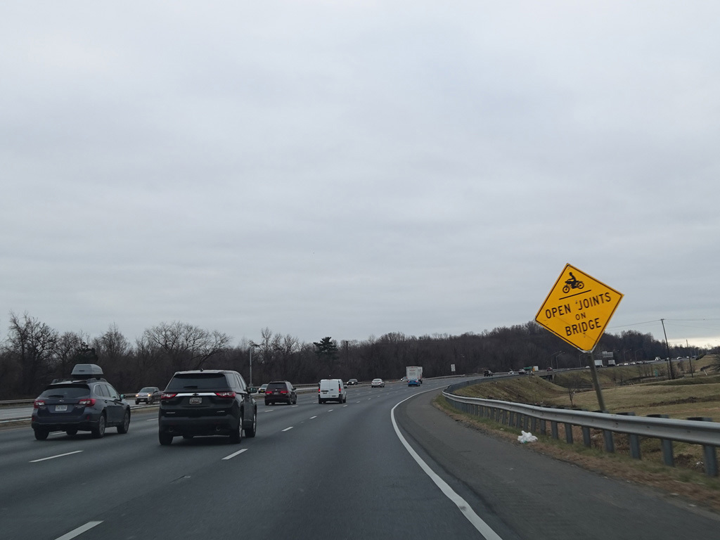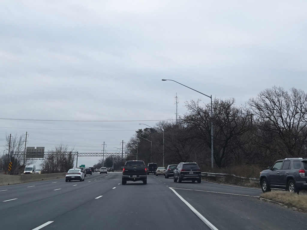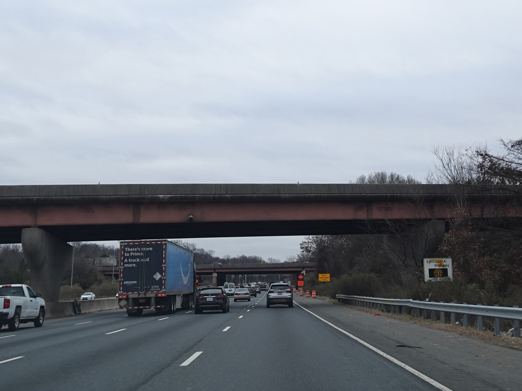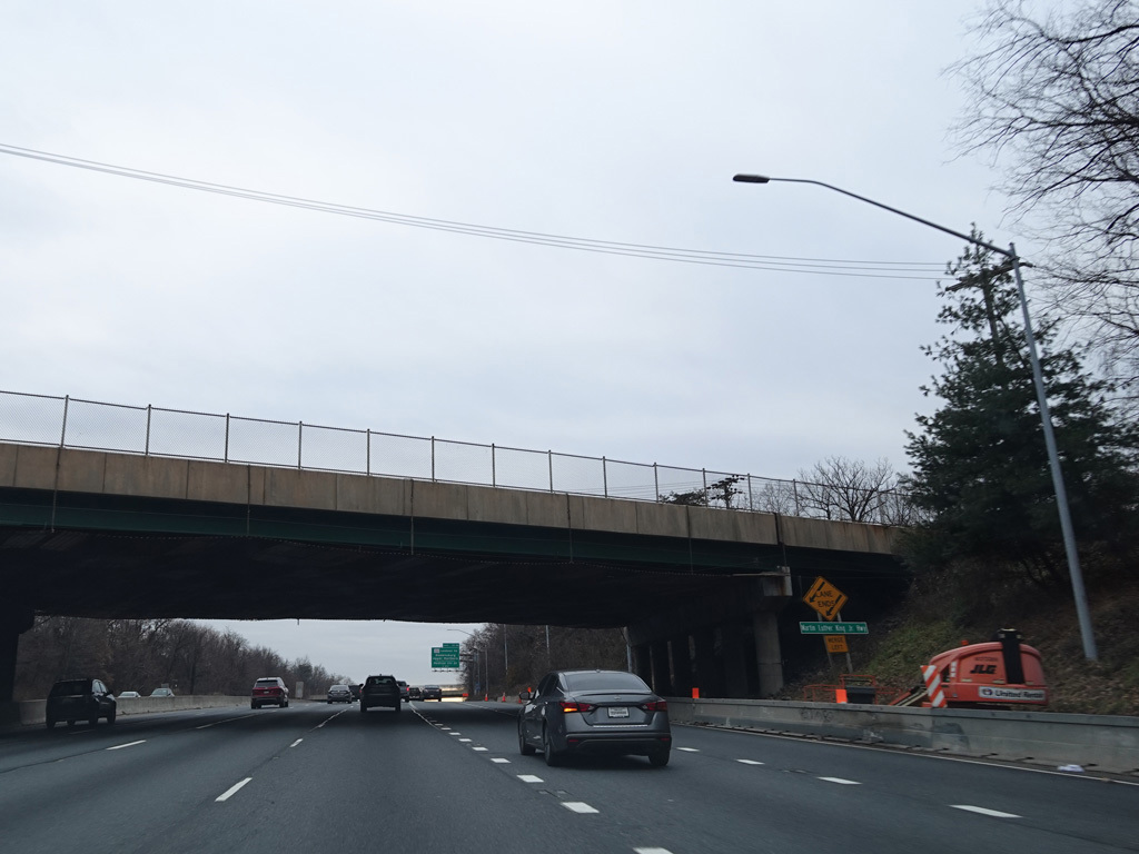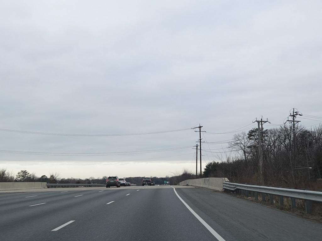 The Beltway splits into two sets of lanes. Bear right for access to exits 17-16. Through traffic may use either set of lanes.