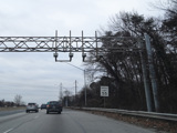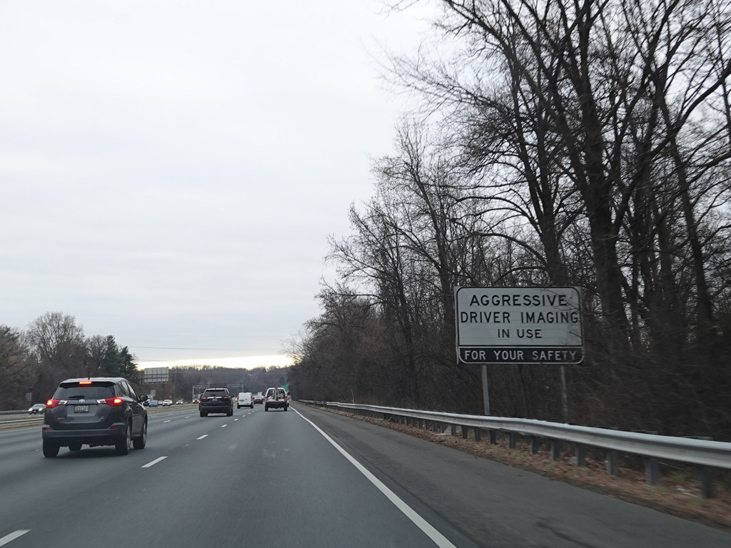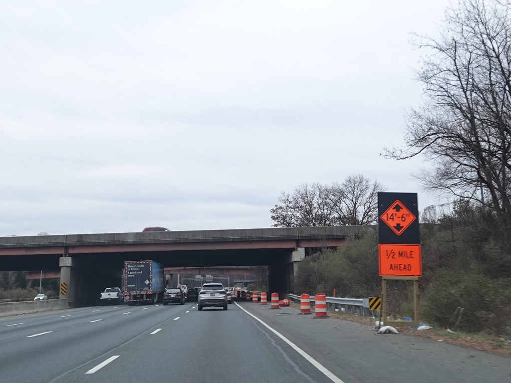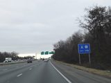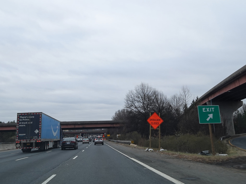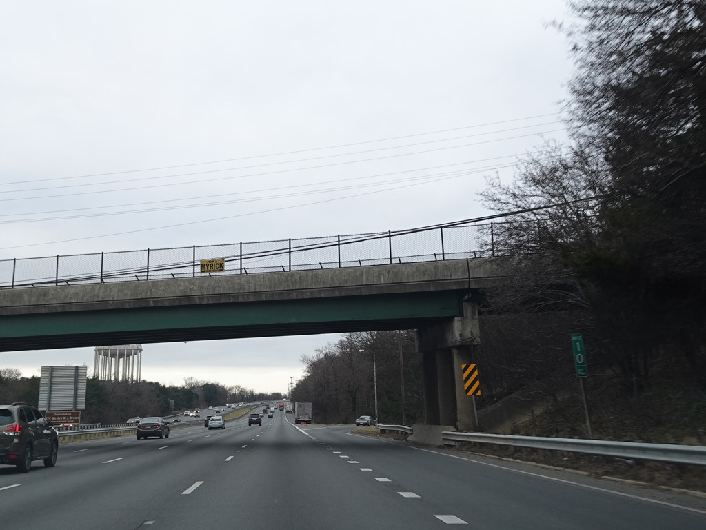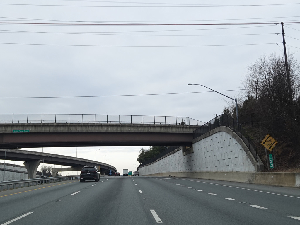 Shortly before crossing into Virginia, the Beltway splits into through and local lanes. There is advance signage for this split before exits 4B-A. The signs indicate which lanes should be used for which exits.