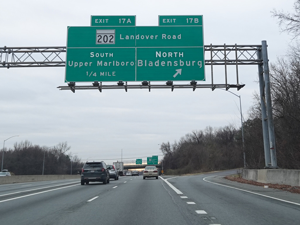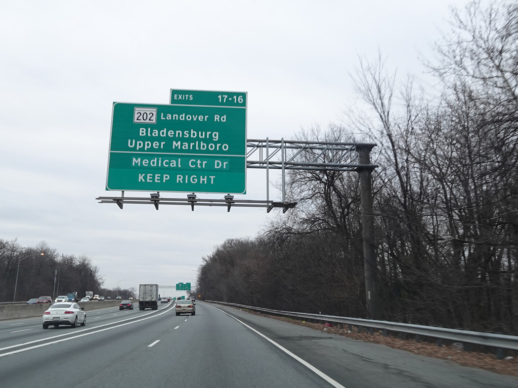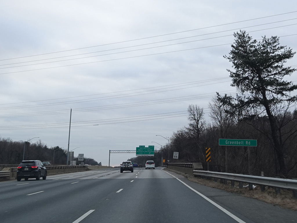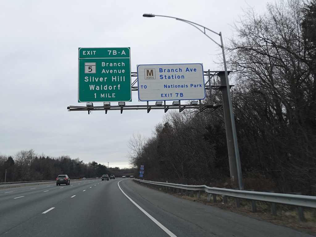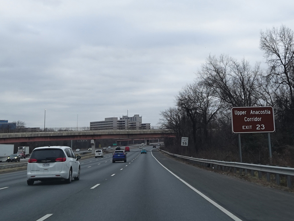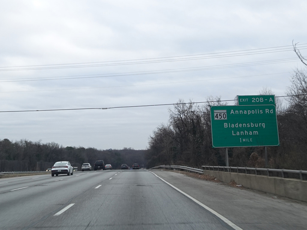 Exits 22B-A are for the Baltimore-Washington Parkway (MD 295). The route number is not posted for the portion of the parkway that is under the jurisdiction of the National Park Service.