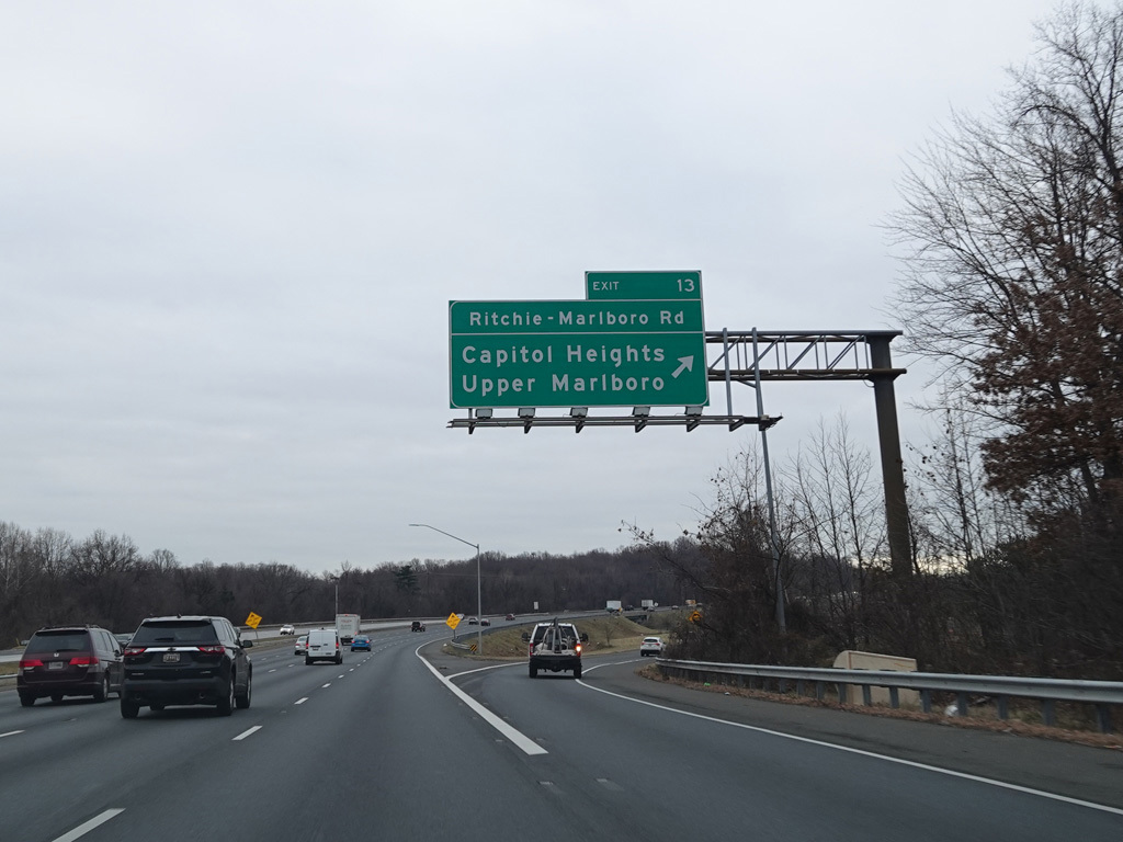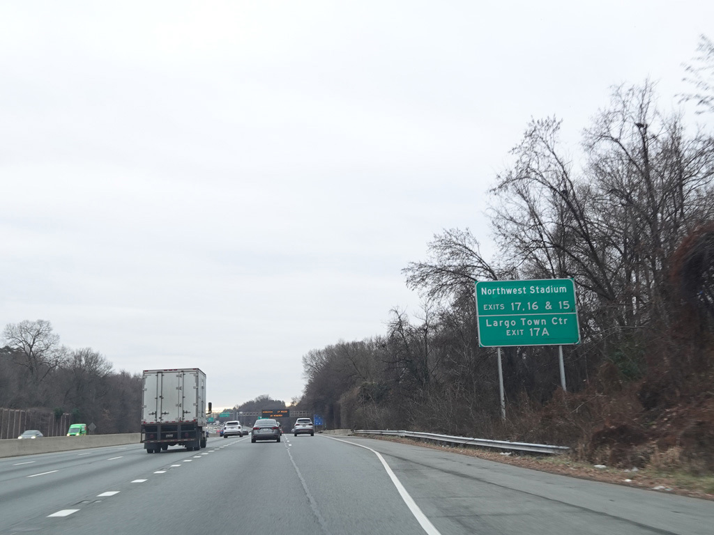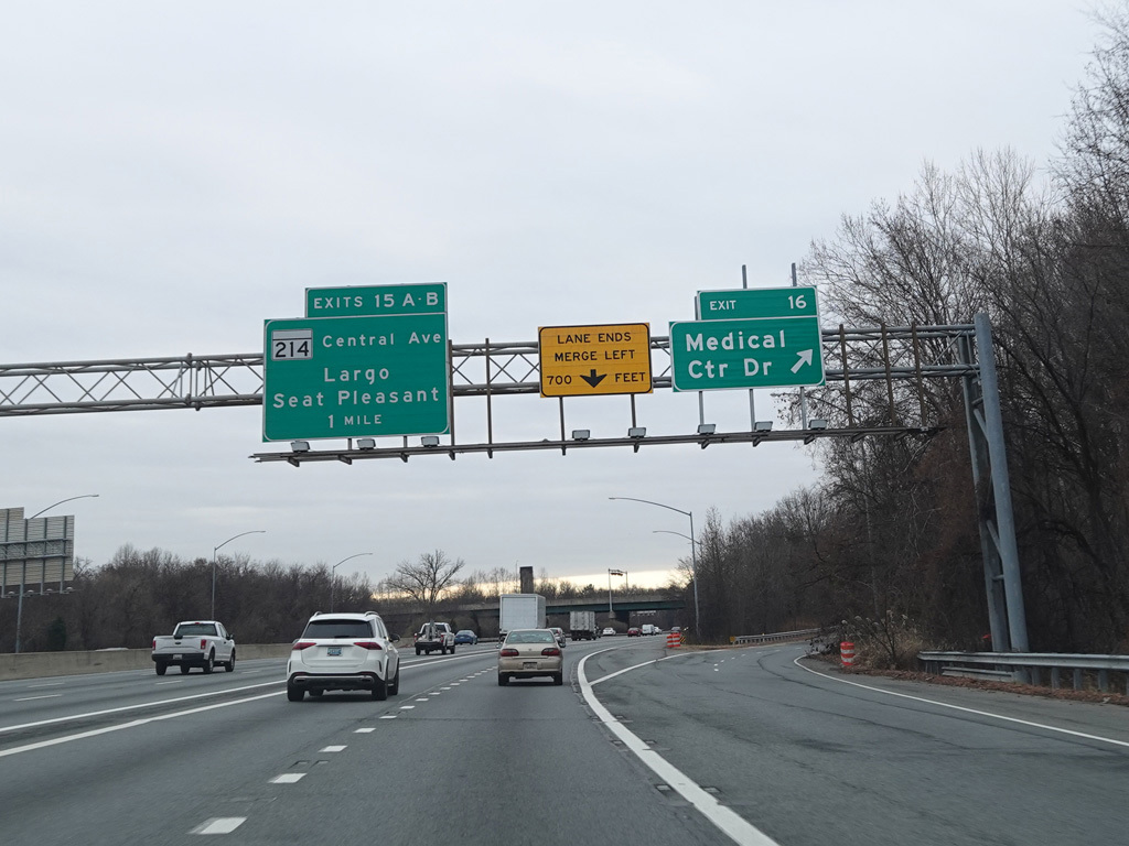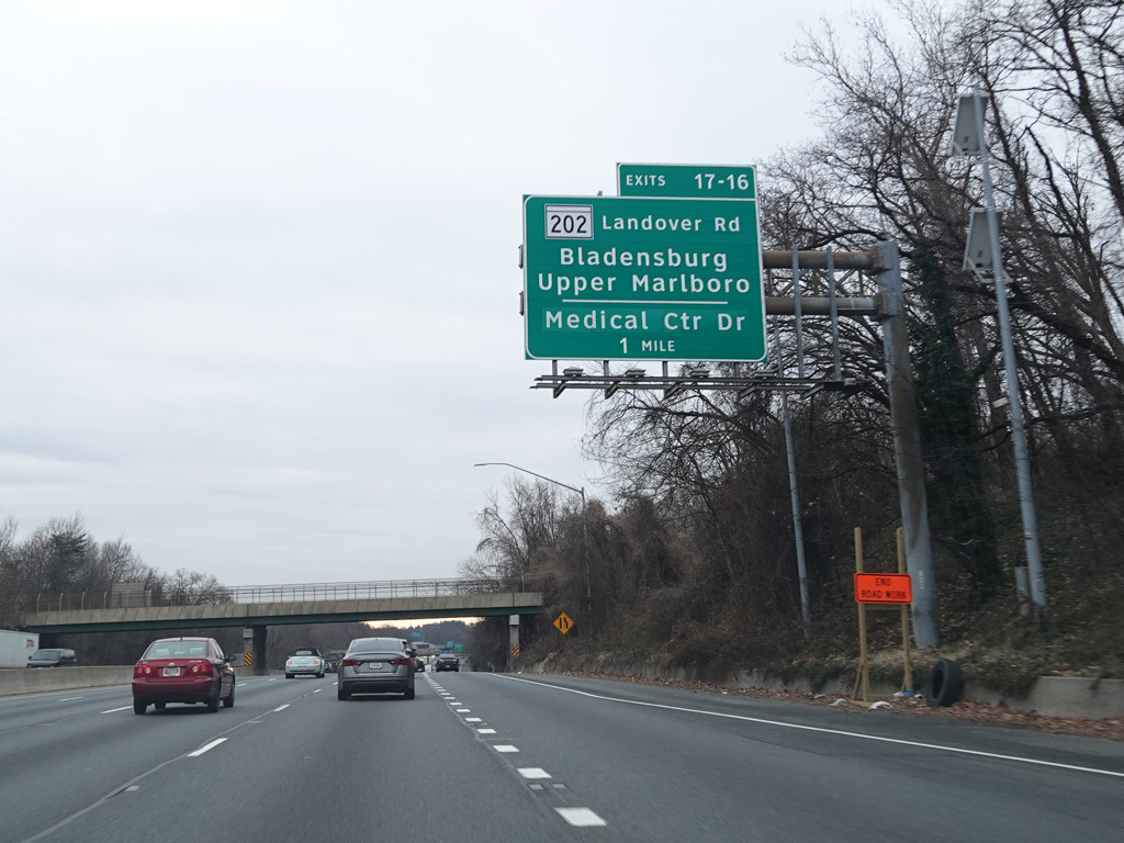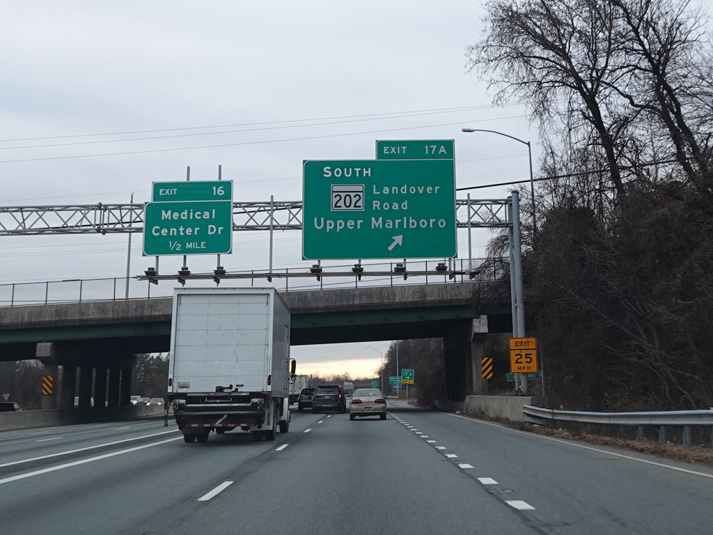 Exits 22B-A are for the Baltimore-Washington Parkway (MD 295). The route number is not posted for the portion of the parkway that is under the jurisdiction of the National Park Service.