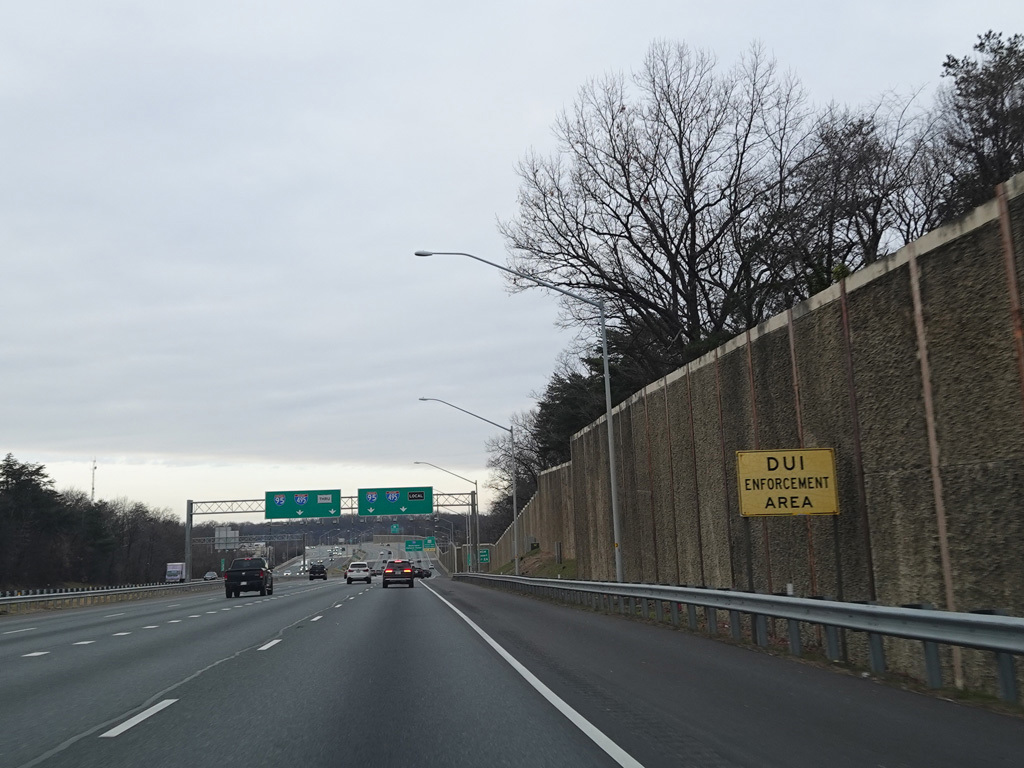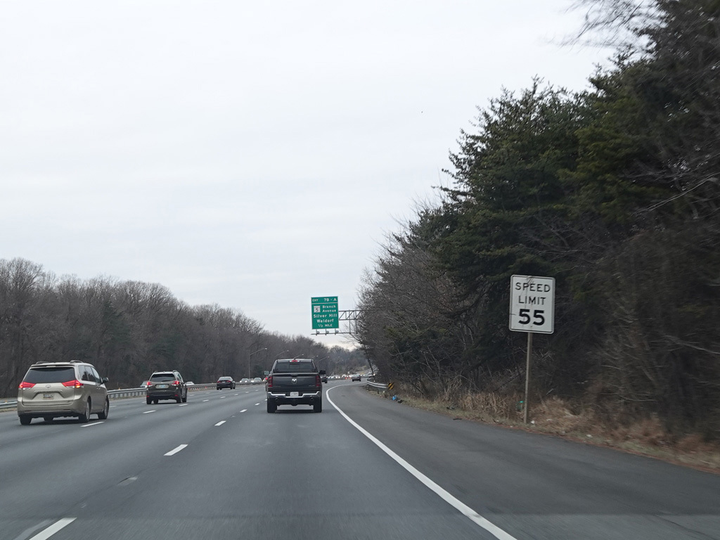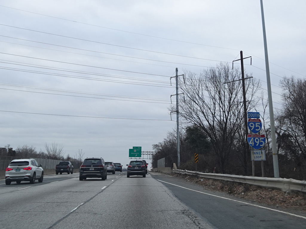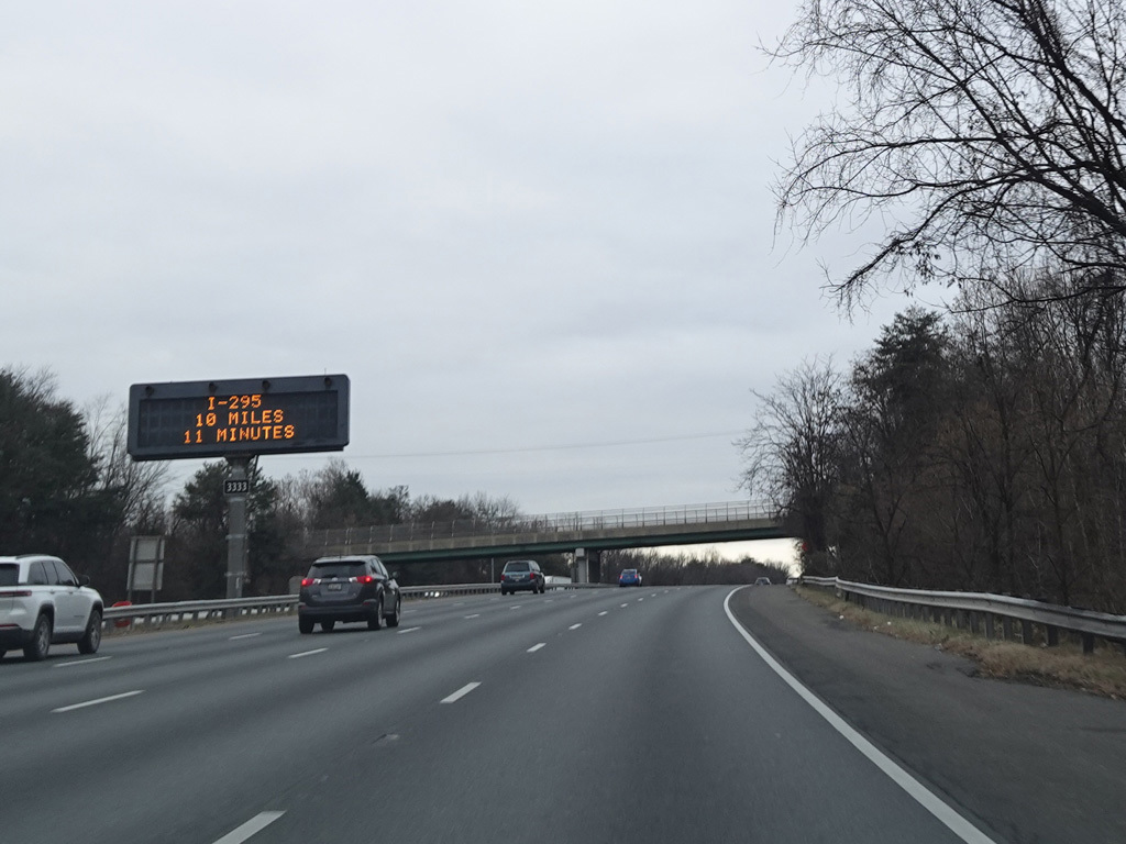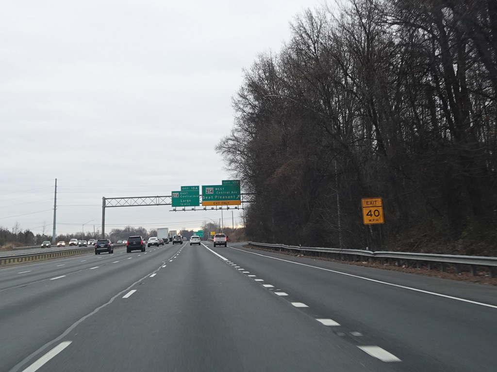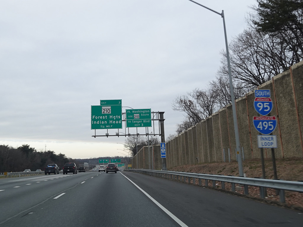 Exits 22B-A are for the Baltimore-Washington Parkway (MD 295). The route number is not posted for the portion of the parkway that is under the jurisdiction of the National Park Service.