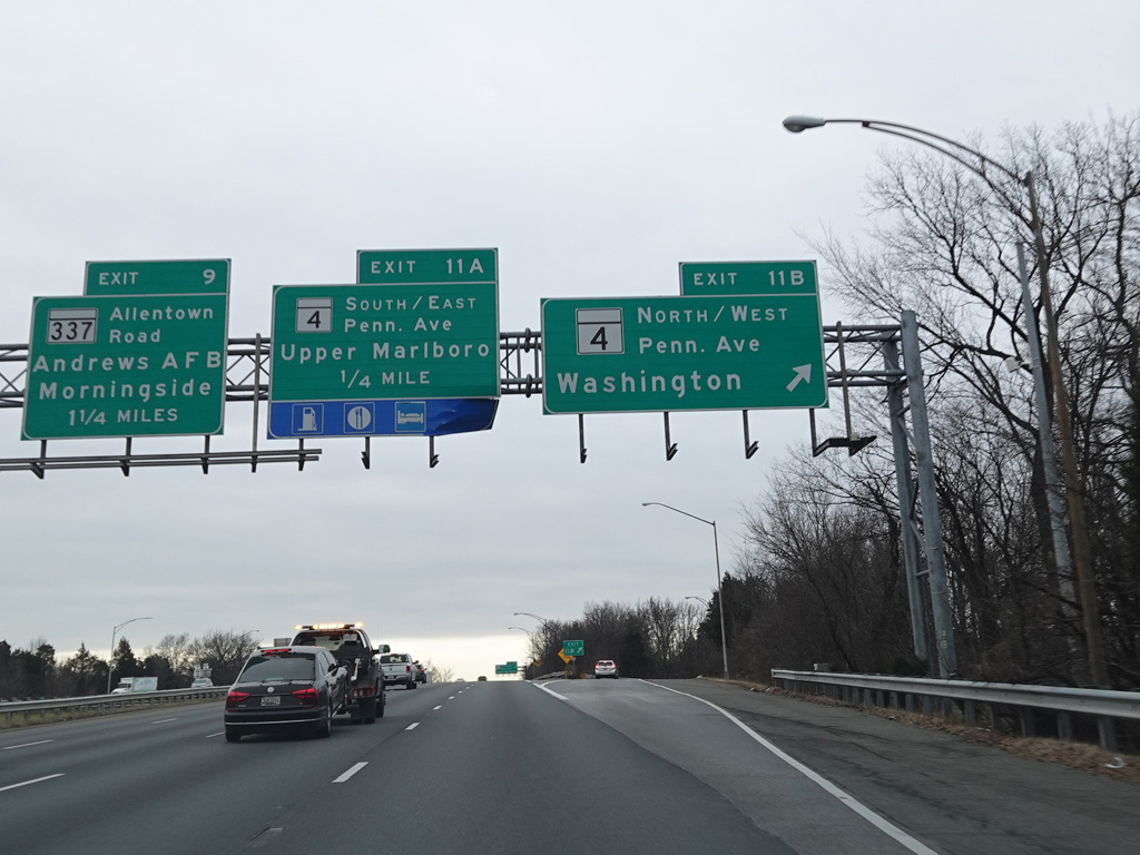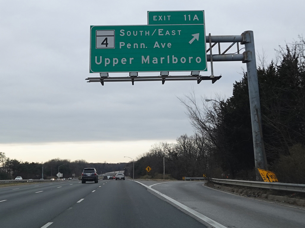 Exits 11B-A are for Pennsylvania Avenue (MD 4).