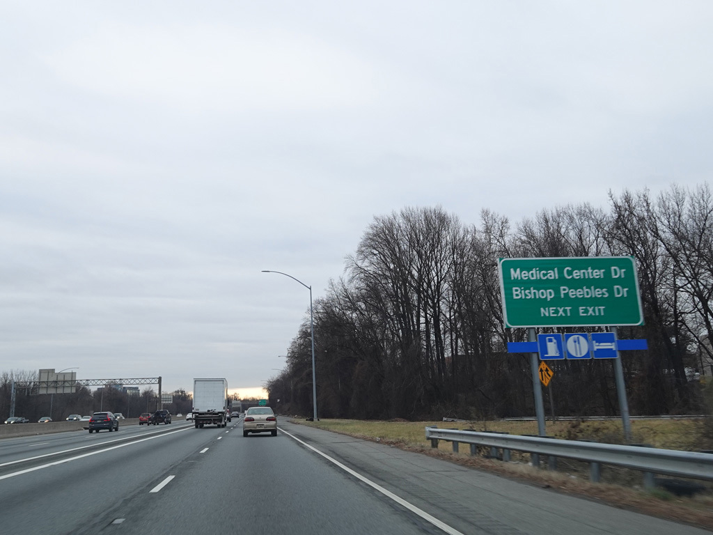 Exit 16 is for Medical Center Drive. The exit also provides access to Bishop Peebles Drive.