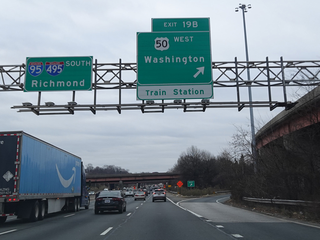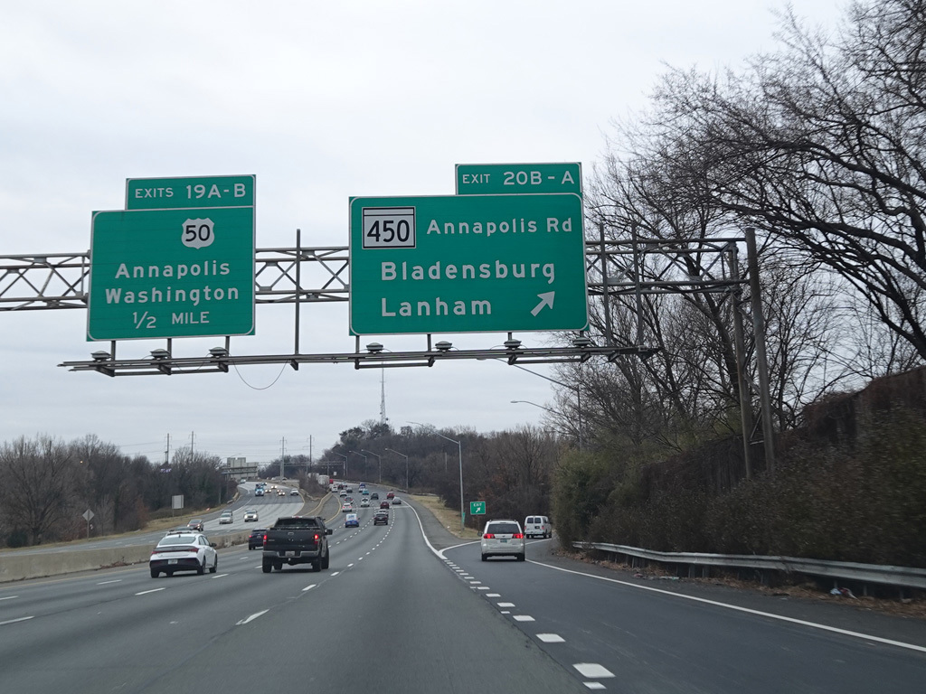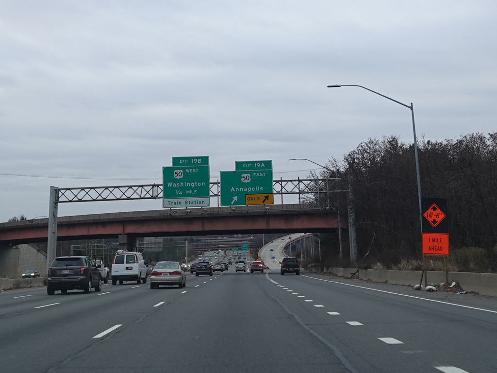 Exits 19A-B are for the John Hanson Highway (US 50).