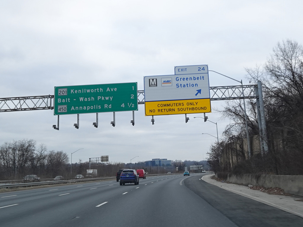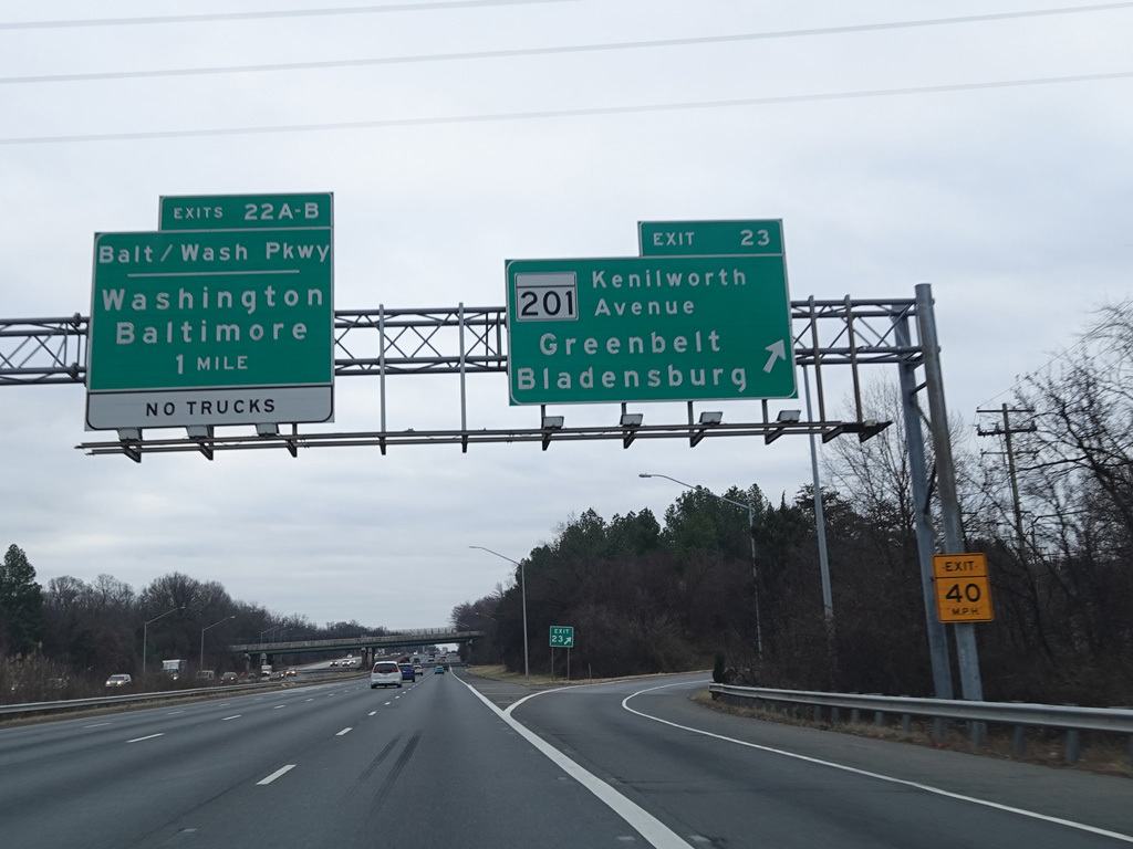 Exit 23 is for Kenilworth Avenue (MD 201). The exit also provides access to Greenbelt Road (MD 193).
