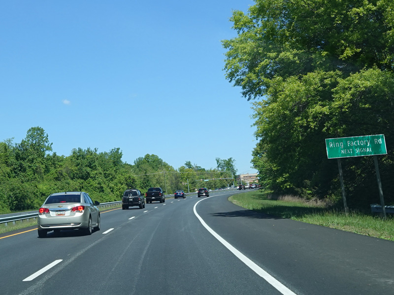 There is a Park and Ride lot, followed by a traffic light at Edgewood Road. Turn right here for access to Van Bibber Road.