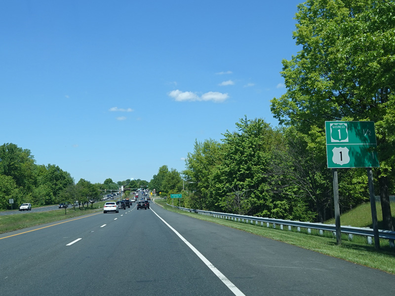 There is a traffic light at Baltimore Pike (Business US 1). Turn right to go north or left to go south.