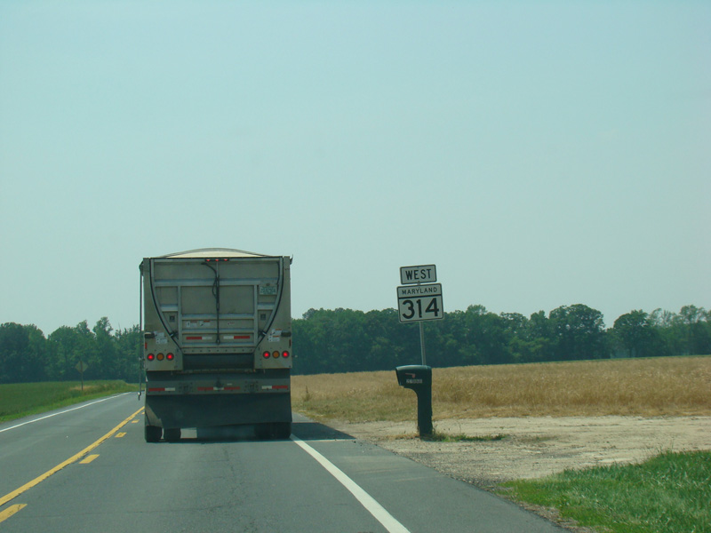 After a short distance, MD 314 ends. Sunset Avenue continues straight ahead as a county road.
