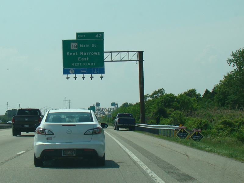 There is an exit for Main Street (MD 18) east. The exit to go west is only accessible from the other side of Ocean Gateway.