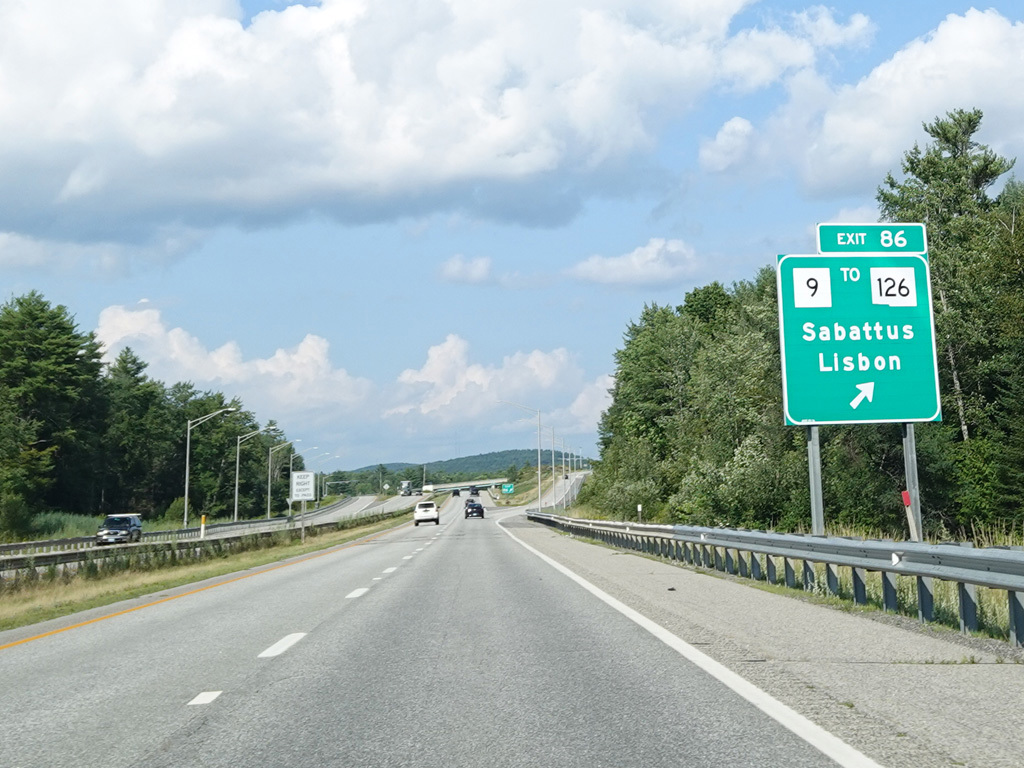 Exit 86 is for Middle Road (ME 9) and Sabattus Road (ME 126).