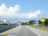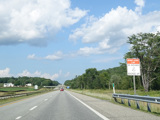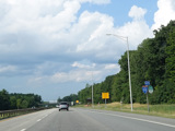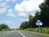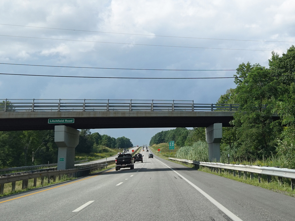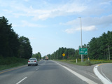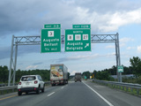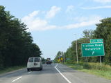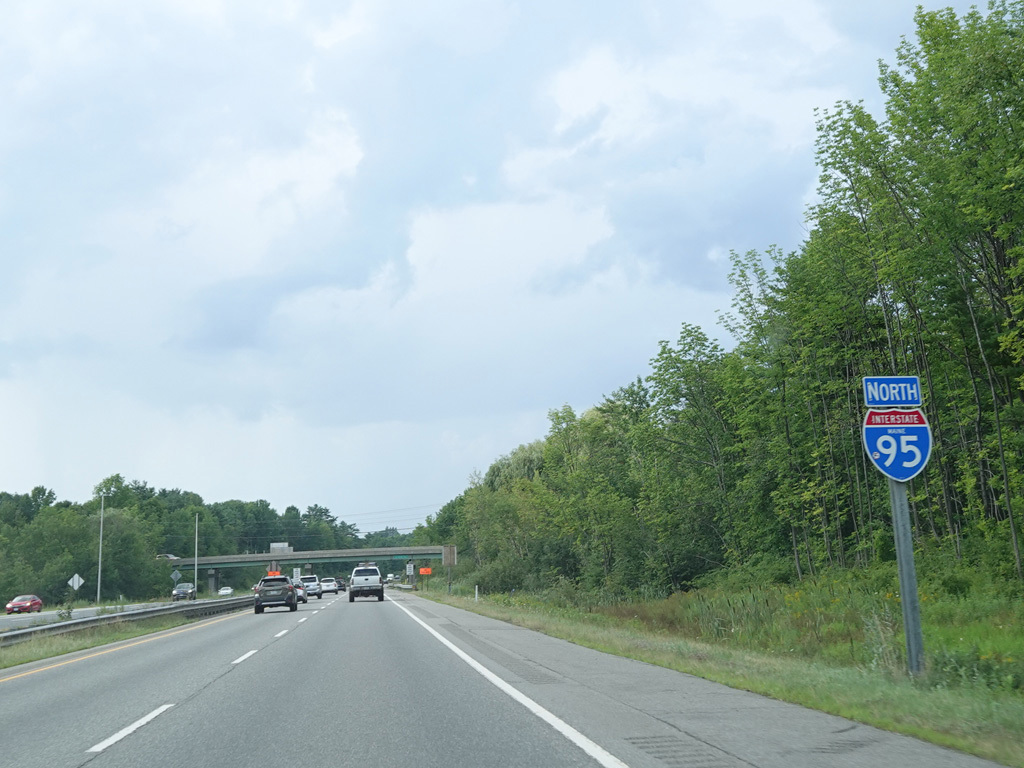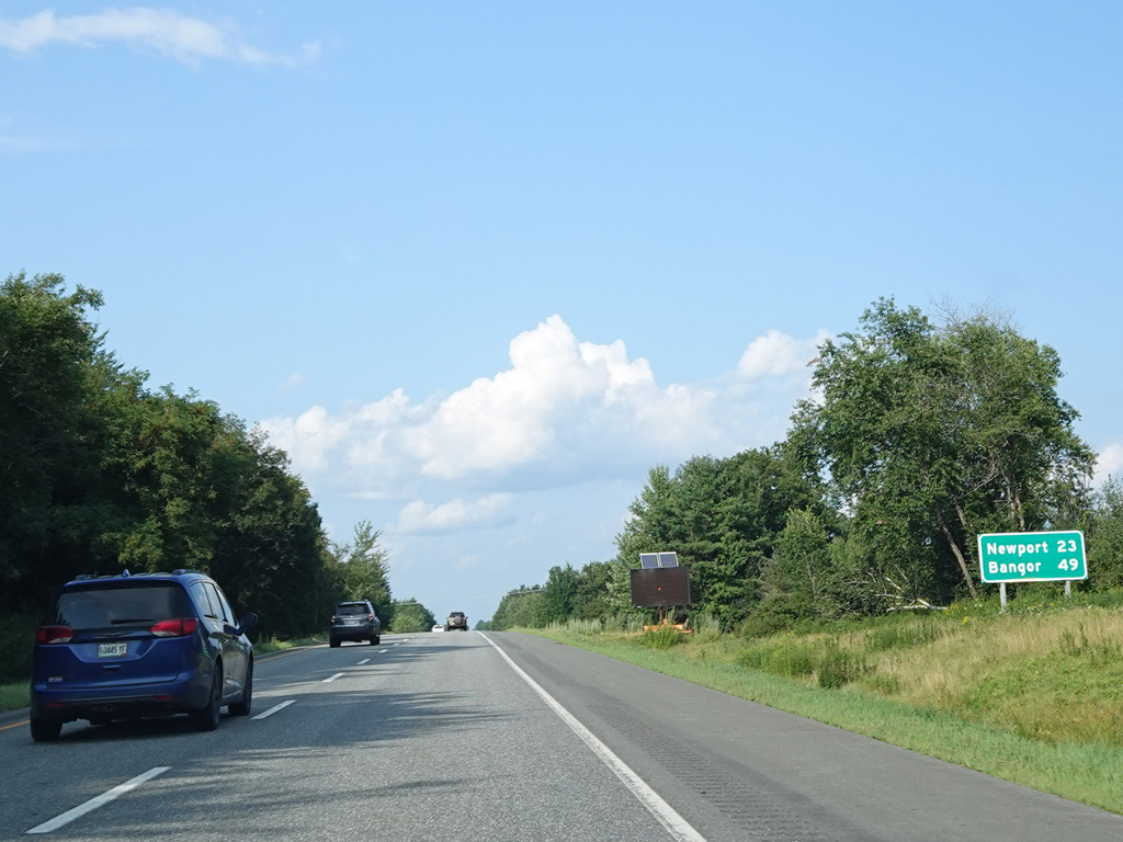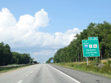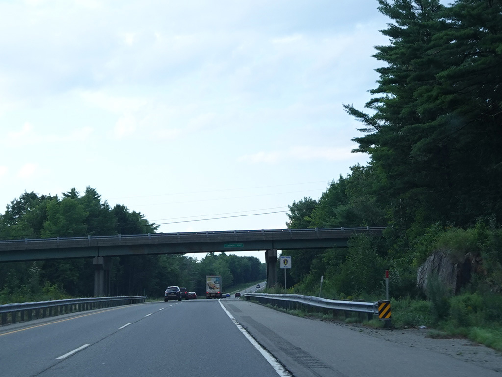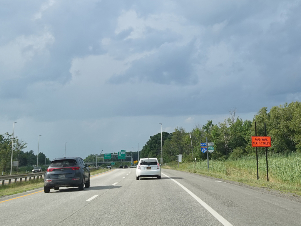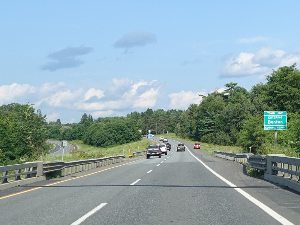 Exit 109 is for Western Avenue (US 202/ME 11/ME 17/ME 100). The Maine Turnpike ends at this point. I-95 continues straight ahead as a free highway from here to the Canadian border.