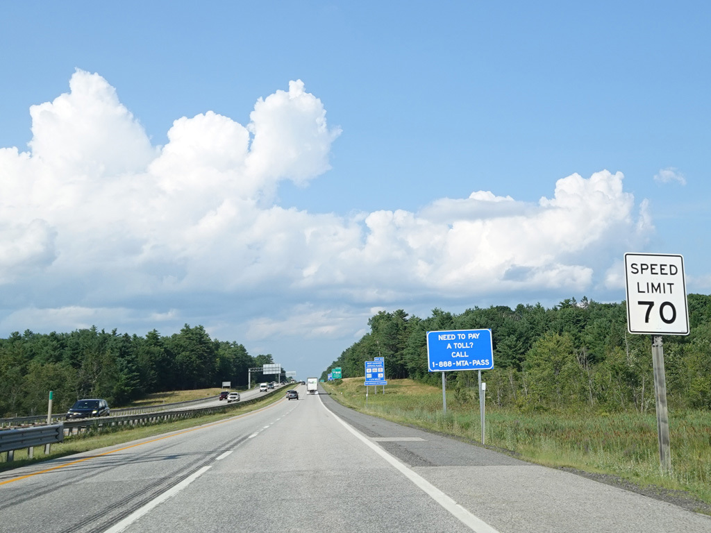 There is a toll plaza before exit 102. Motorists without E-ZPass who wish to use the service plaza at exit 102 should save their receipts in order to get back on the turnpike without paying another toll.