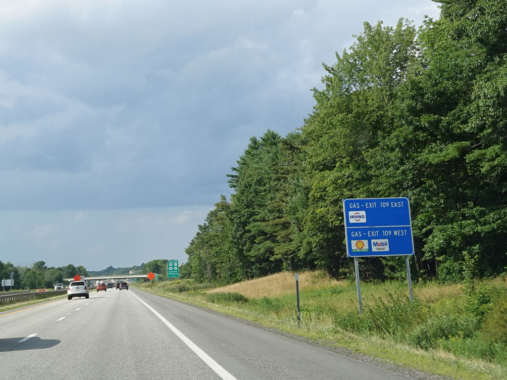 Exit 102 is for I-295 south and Lewiston Road (ME 9/ME 126). The West Gardiner Service Plaza is at this exit.