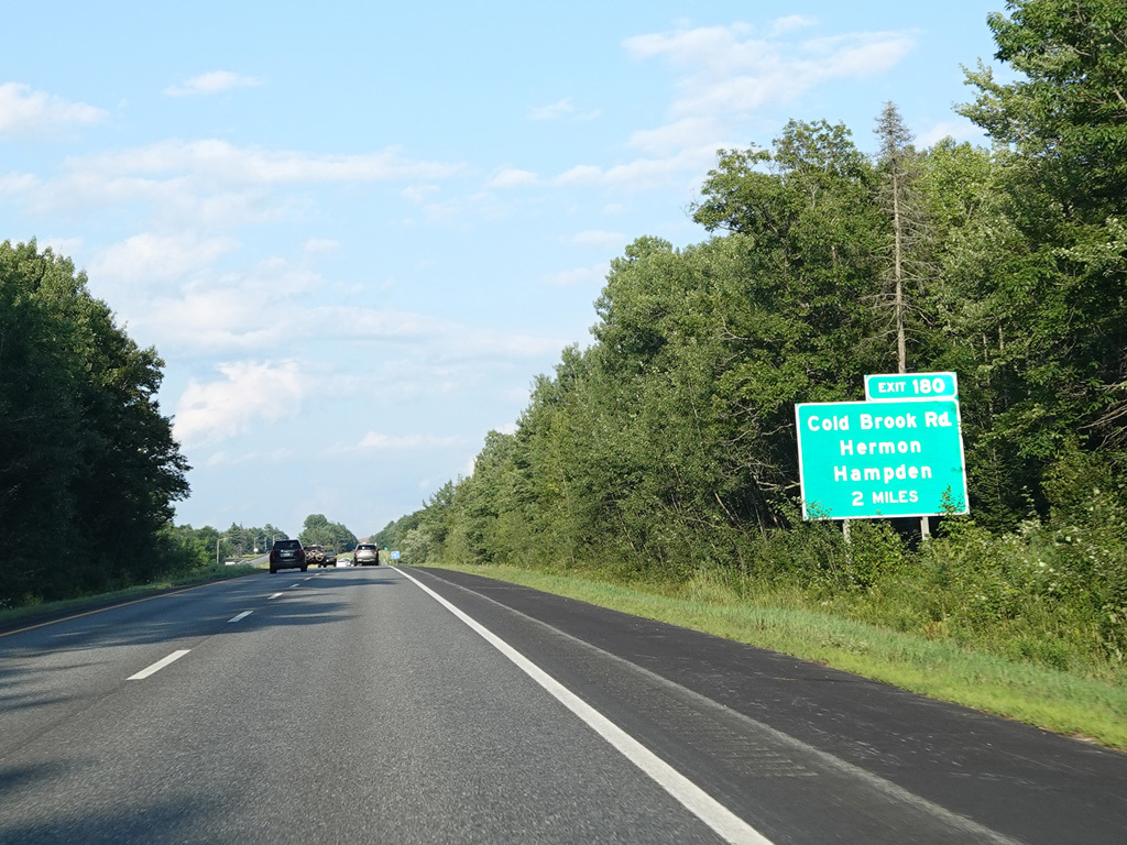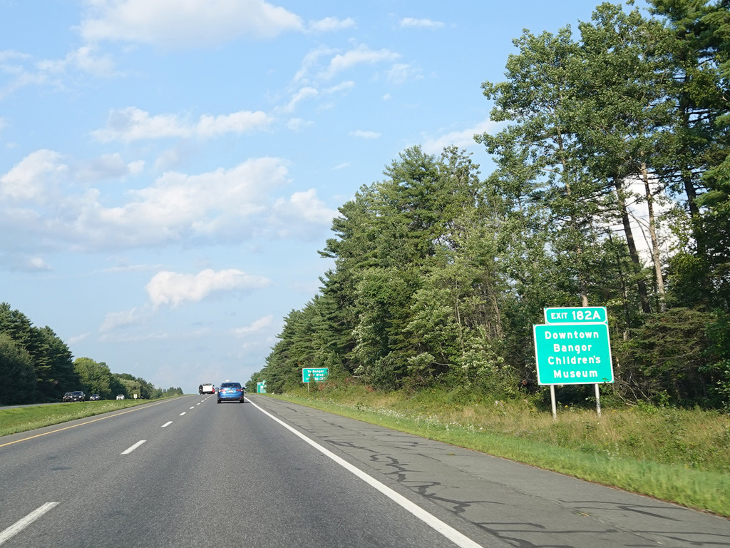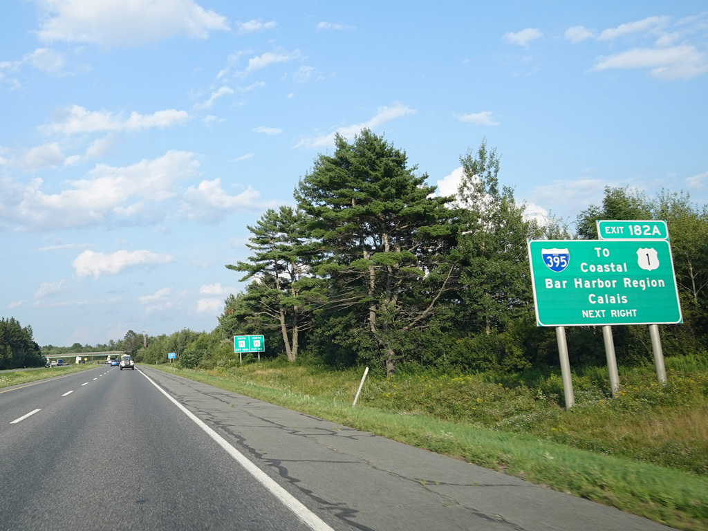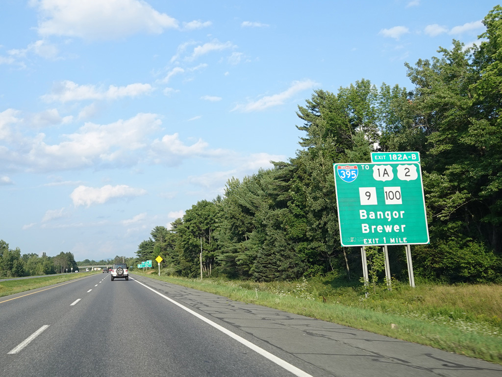 Exit 182A is for I-395, which provides access to Main Road (US 1A) and ME 9. Exit 182B is for Hammond Street (US 2/ME 100). ME 15 also passes through this interchange, following I-95 to the north and I-395 to the south.