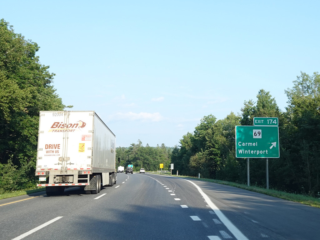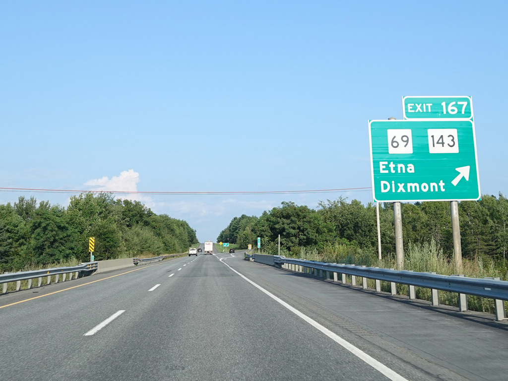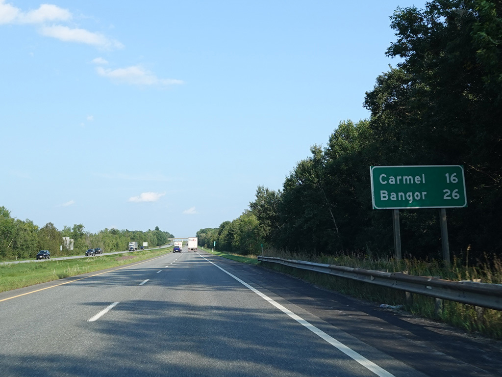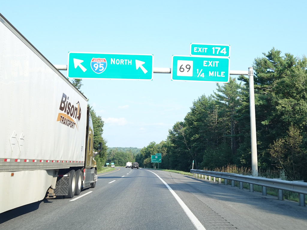 Exit 182A is for I-395, which provides access to Main Road (US 1A) and ME 9. Exit 182B is for Hammond Street (US 2/ME 100). ME 15 also passes through this interchange, following I-95 to the north and I-395 to the south.