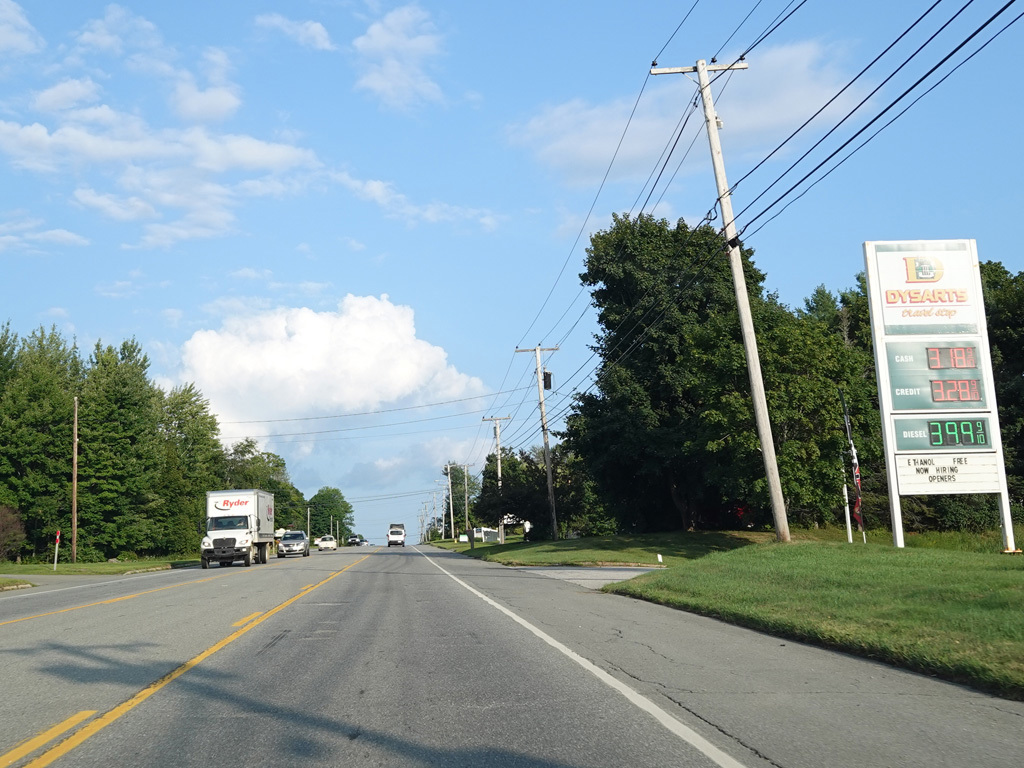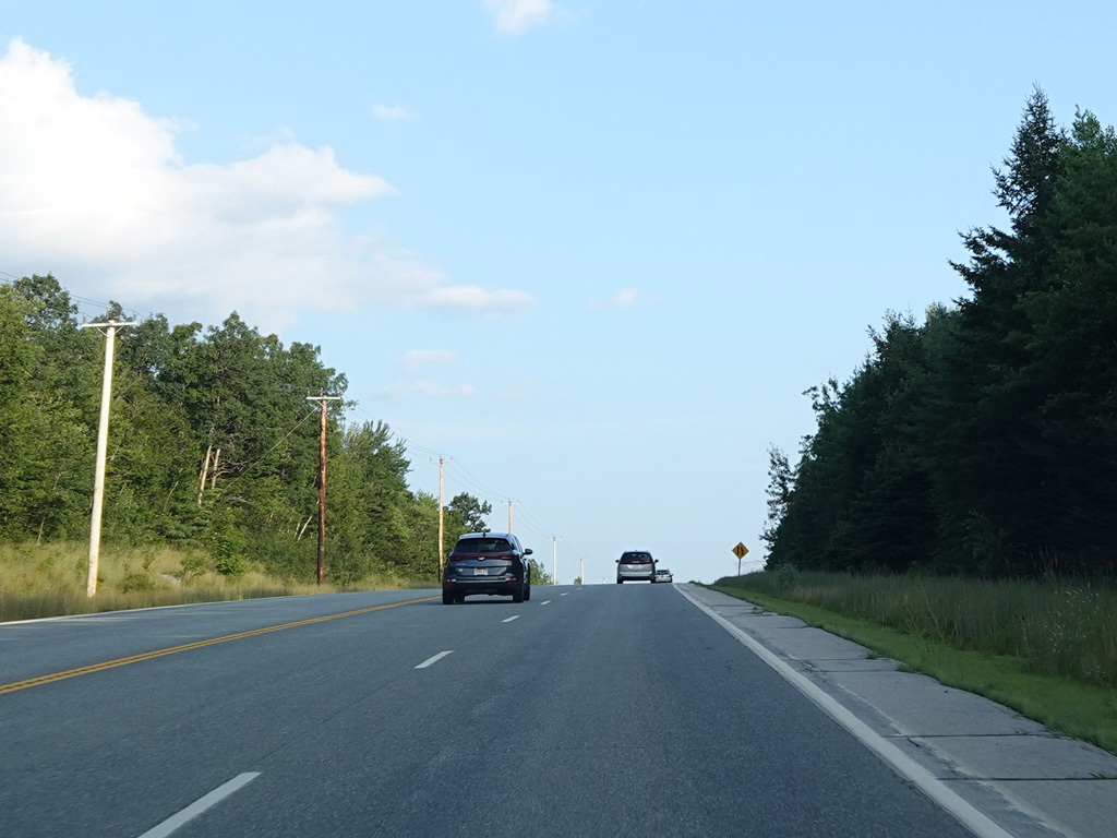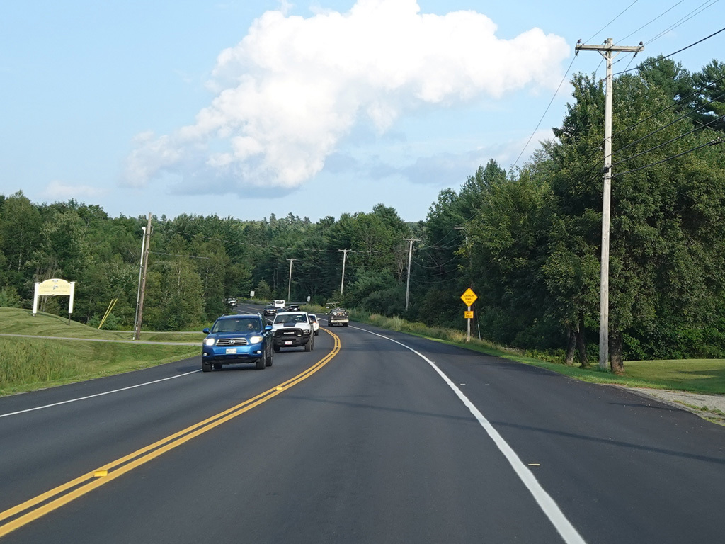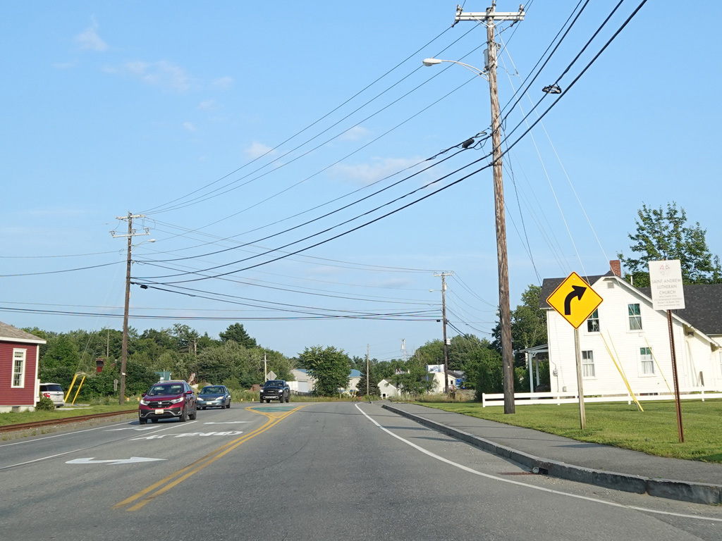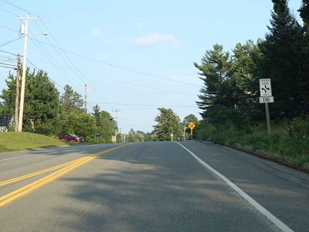 There are a few additional stretches with climbing lanes. Main Road changes names to become Bangor Road upon leaving Dedham.