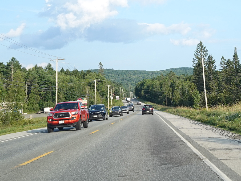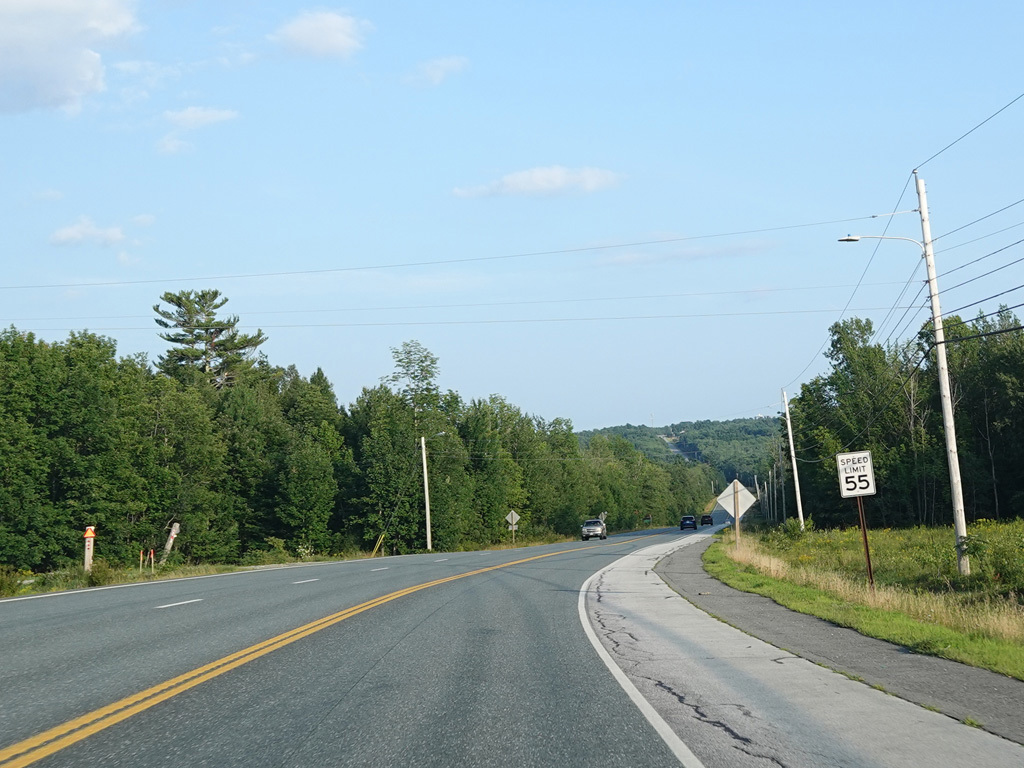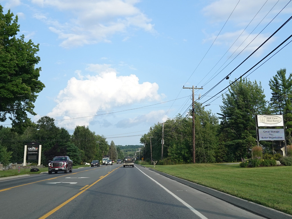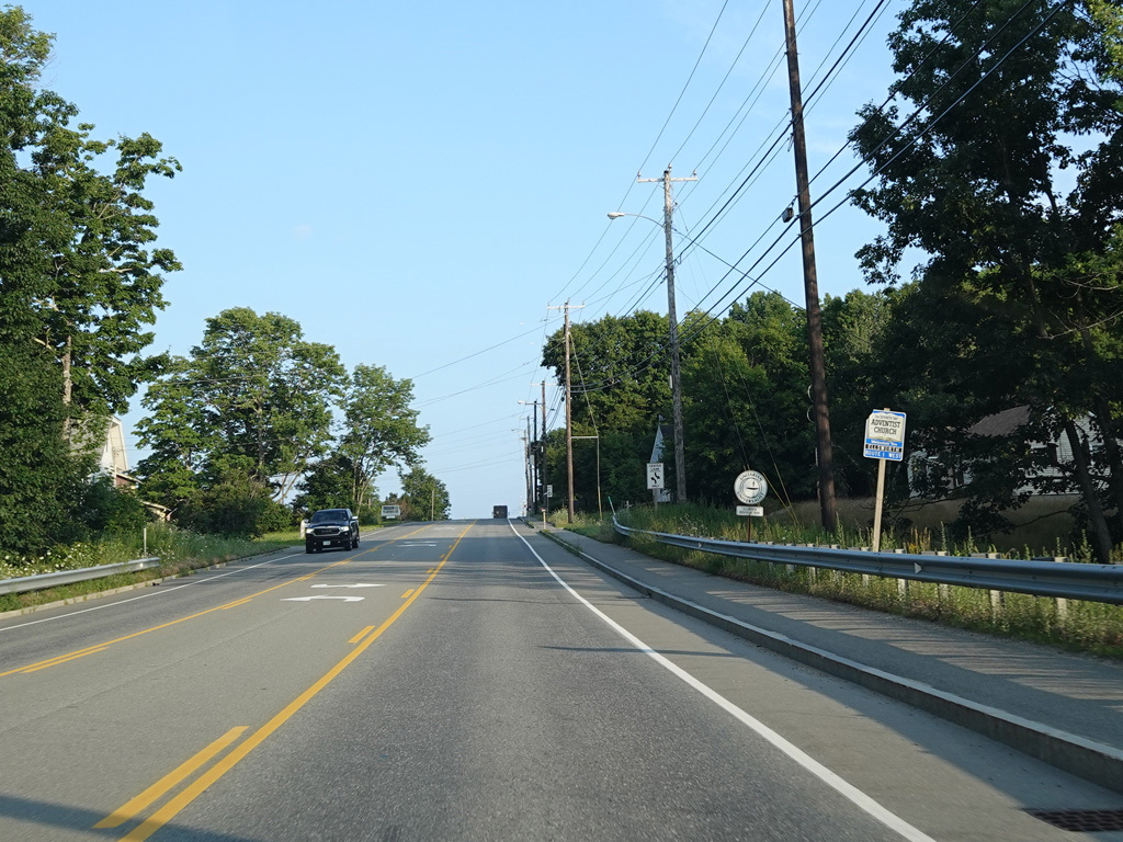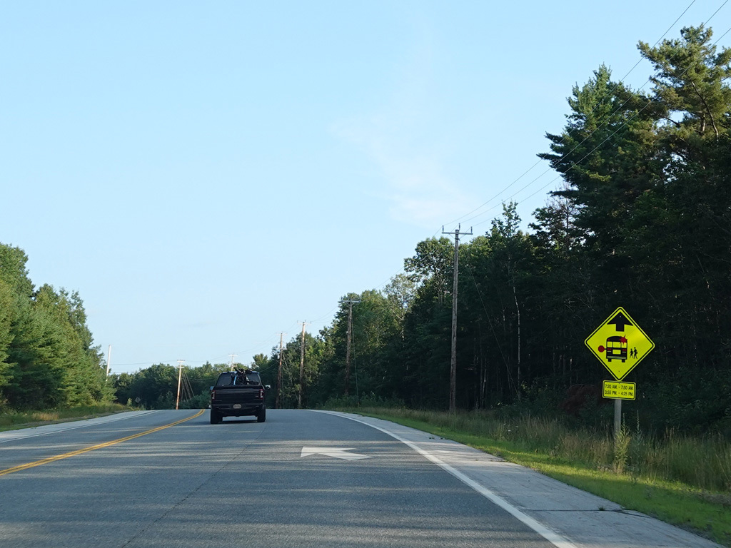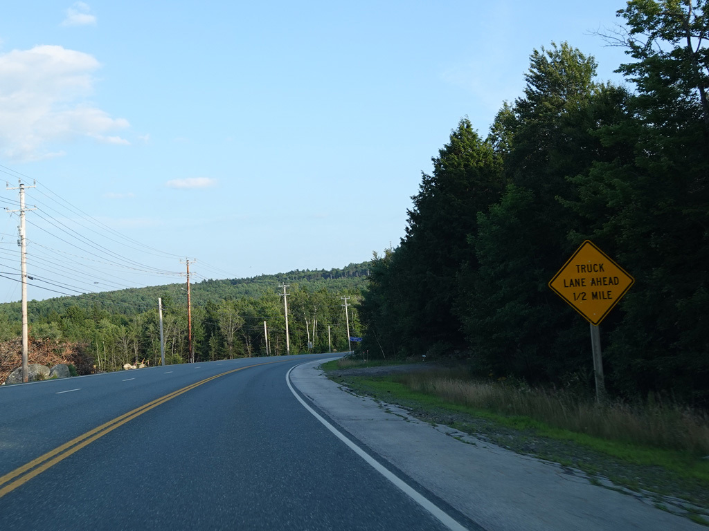 There are a few additional stretches with climbing lanes. Main Road changes names to become Bangor Road upon leaving Dedham.
