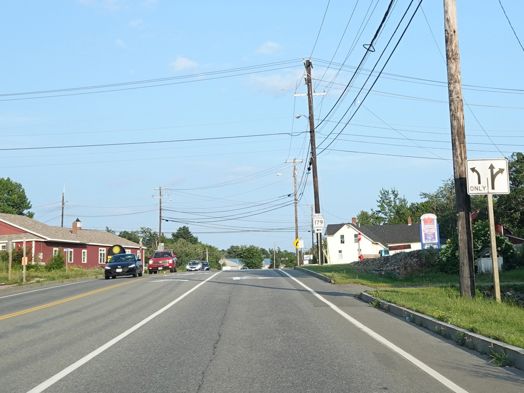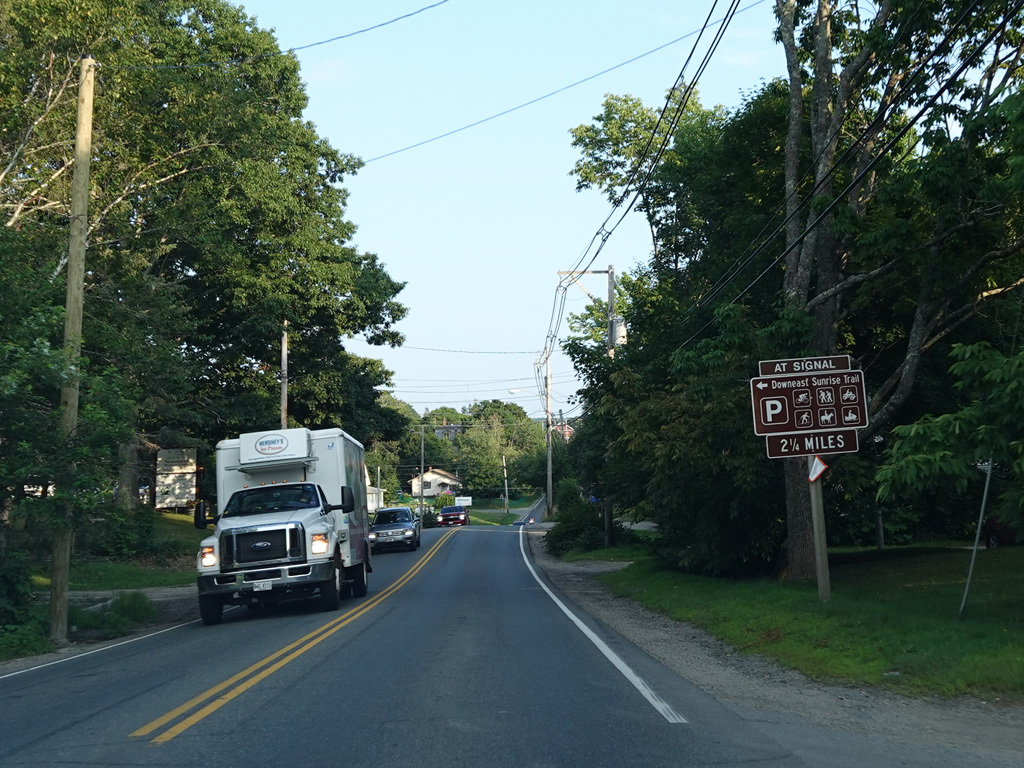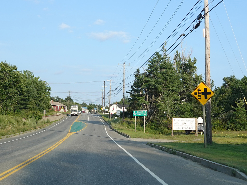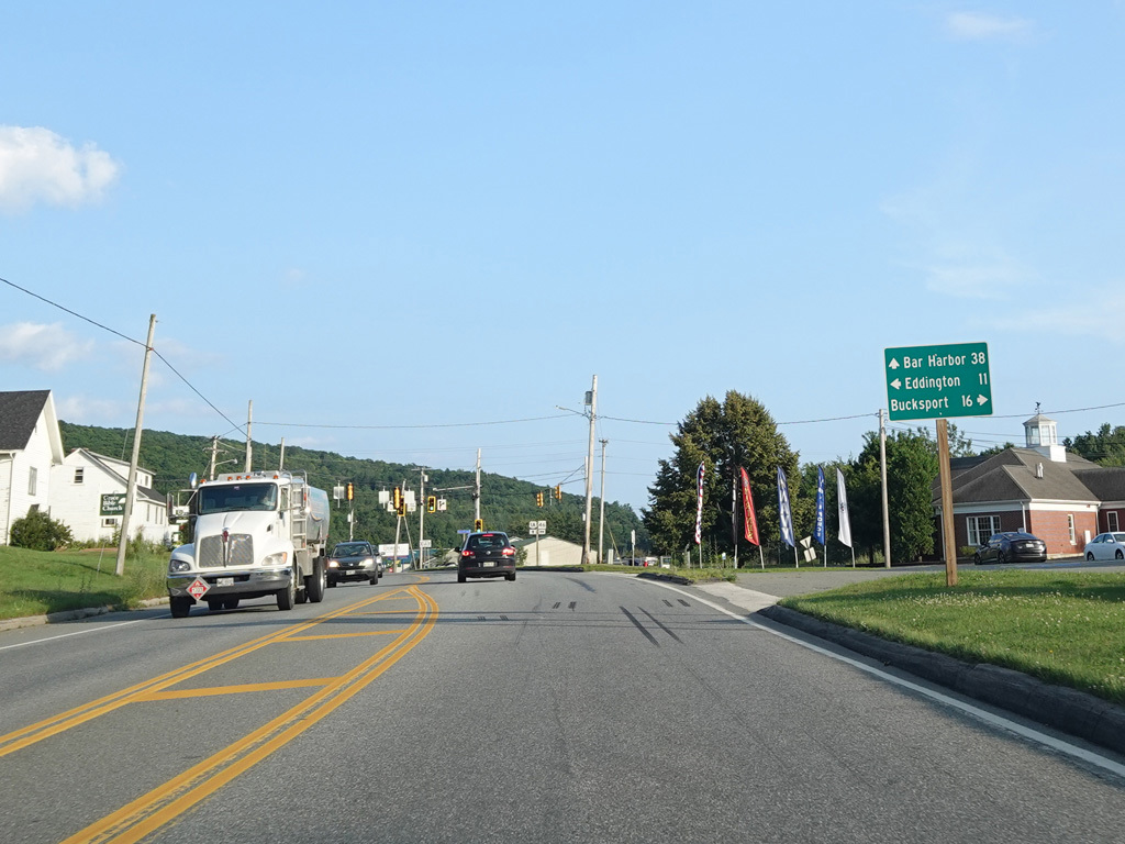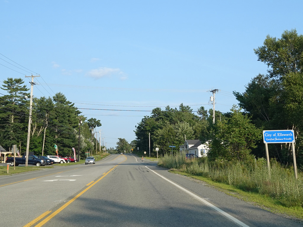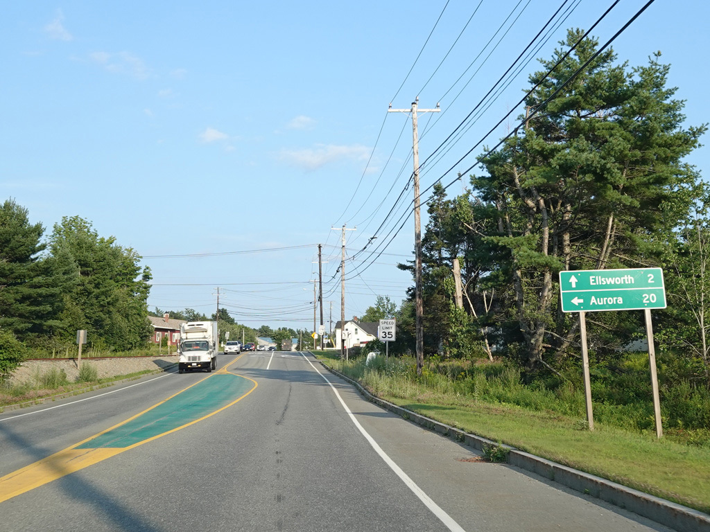 Coming into Ellsworth, the speed limit drops to 40 MPH. Mariaville Road (ME 180) begins on the left at an uncontrolled intersection.