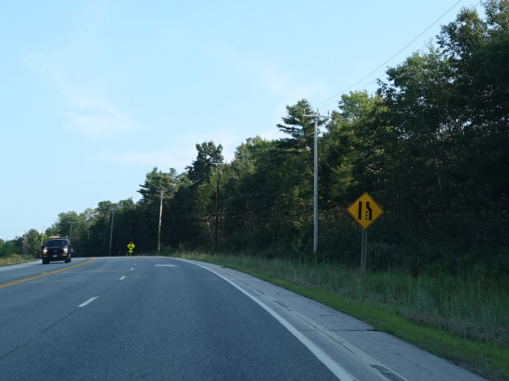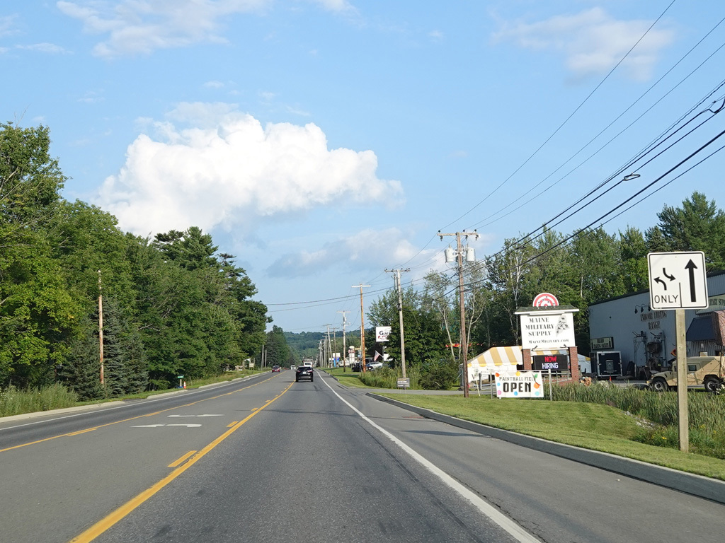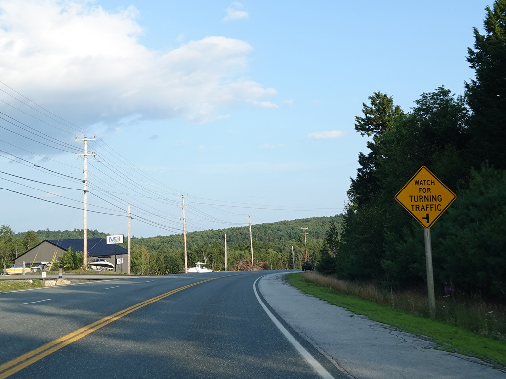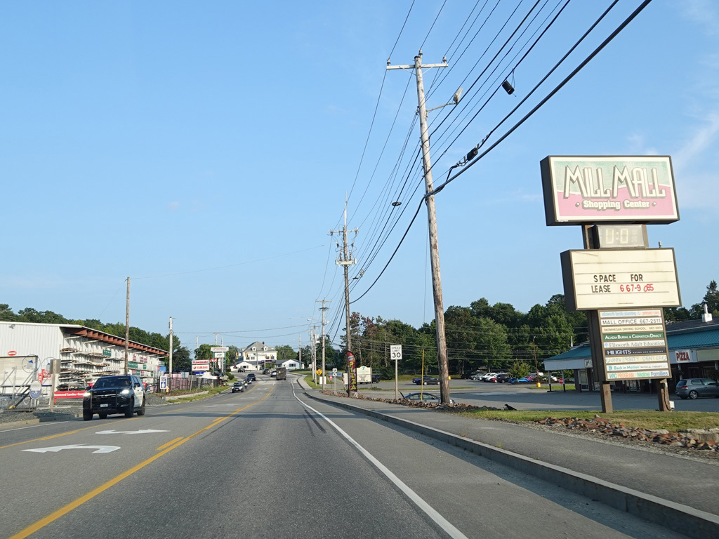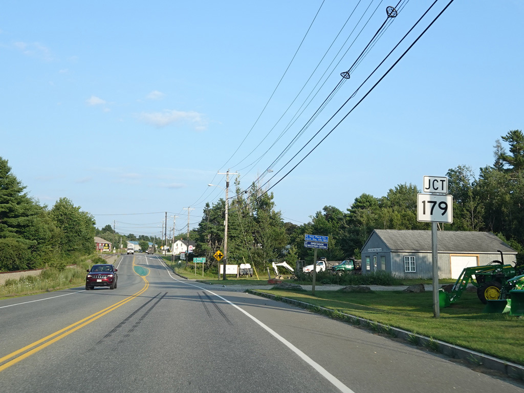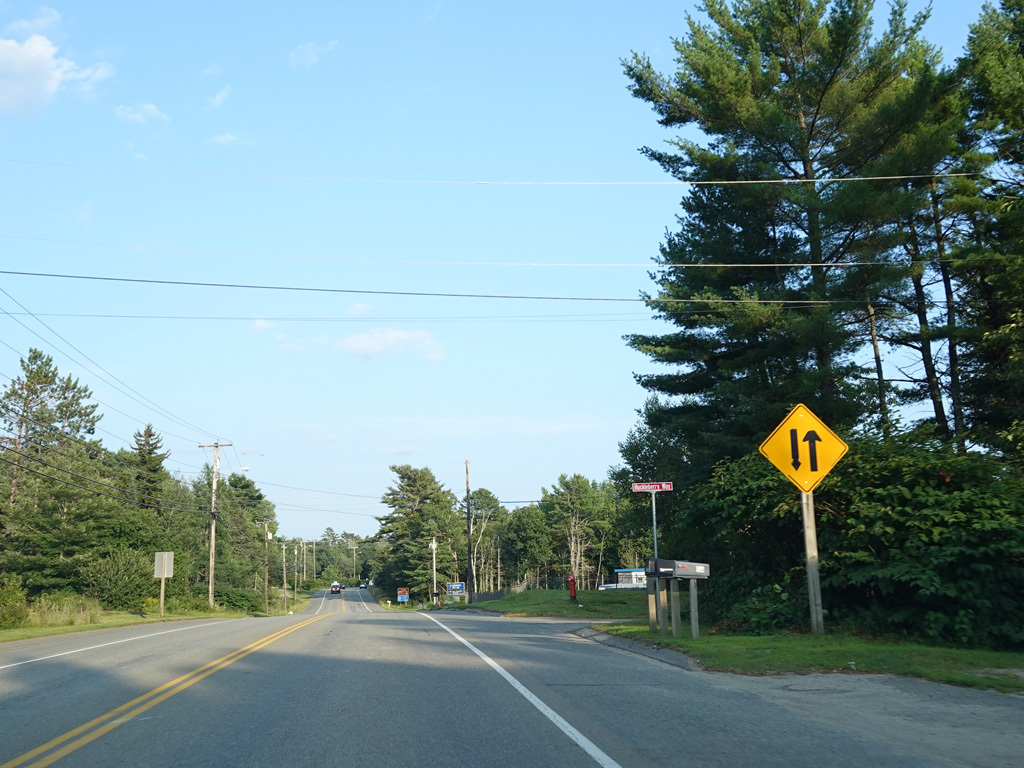 Coming into Ellsworth, the speed limit drops to 40 MPH. Mariaville Road (ME 180) begins on the left at an uncontrolled intersection.