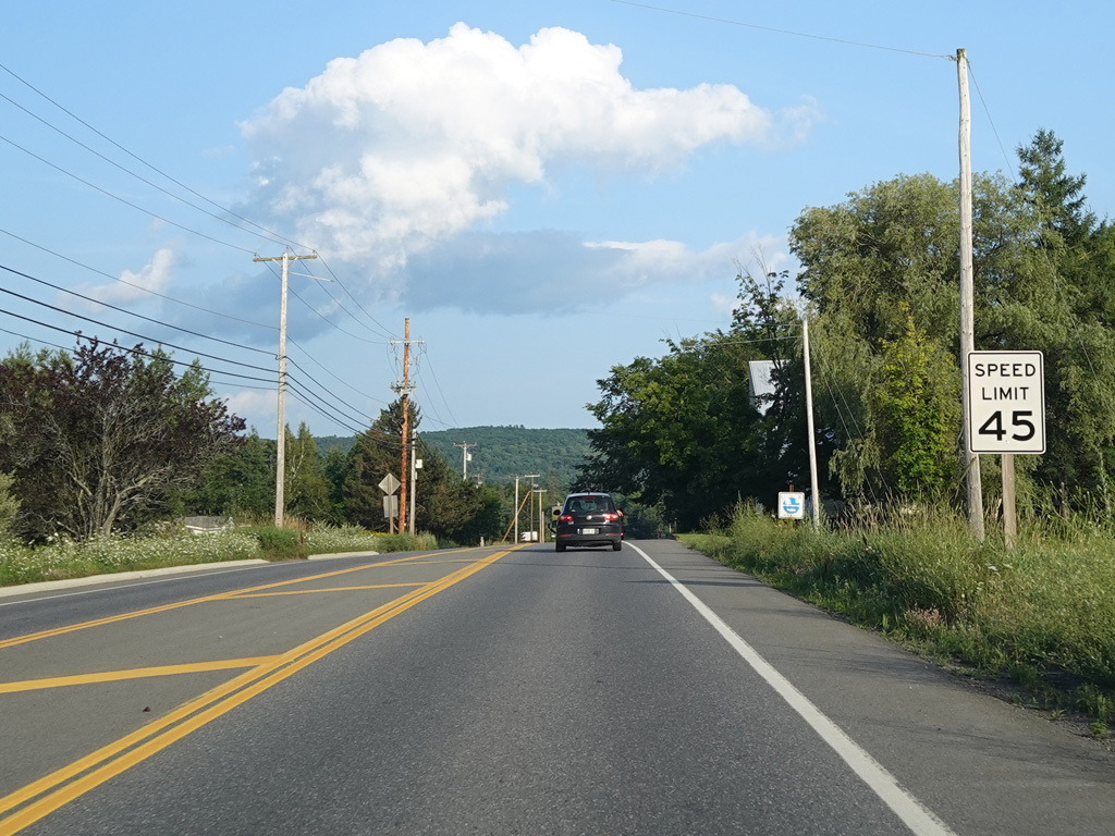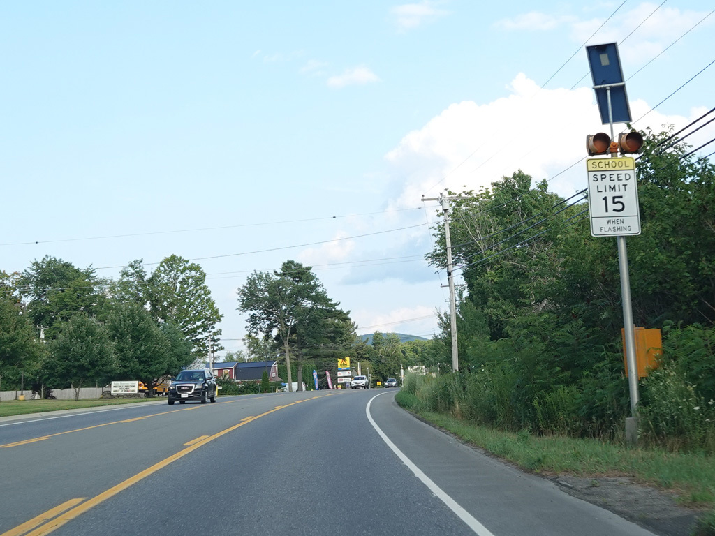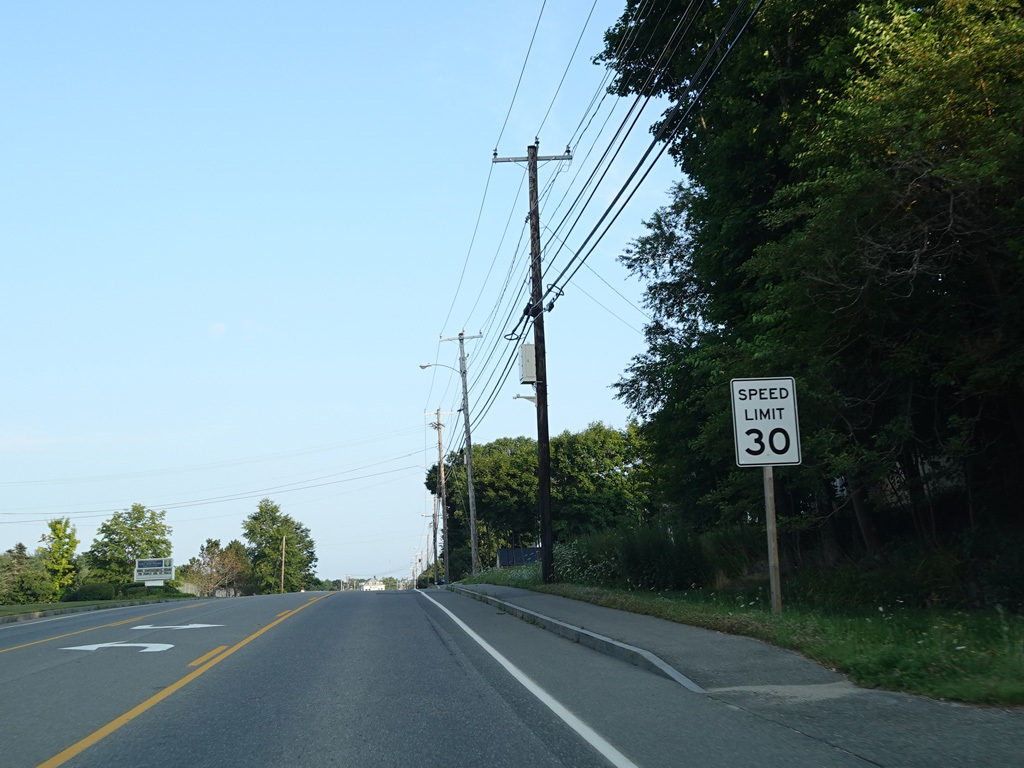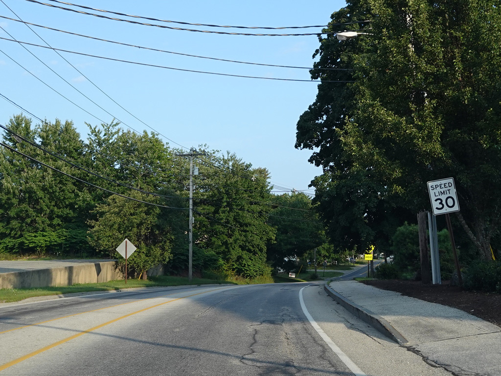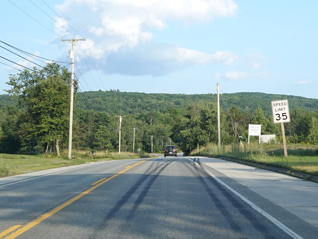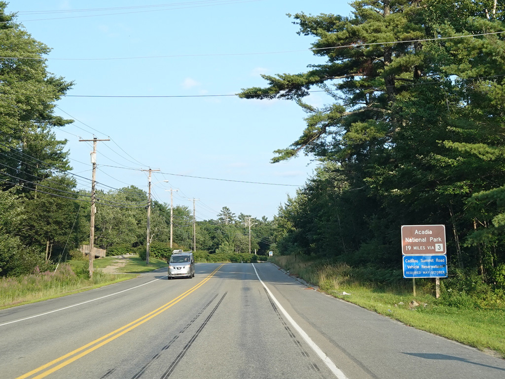Coming into Ellsworth, the speed limit drops to 40 MPH. Mariaville Road (ME 180) begins on the left at an uncontrolled intersection.