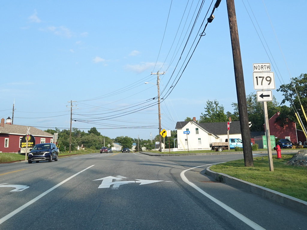 The speed limit drops to 35 MPH. North Street (ME 179) begins on the left.