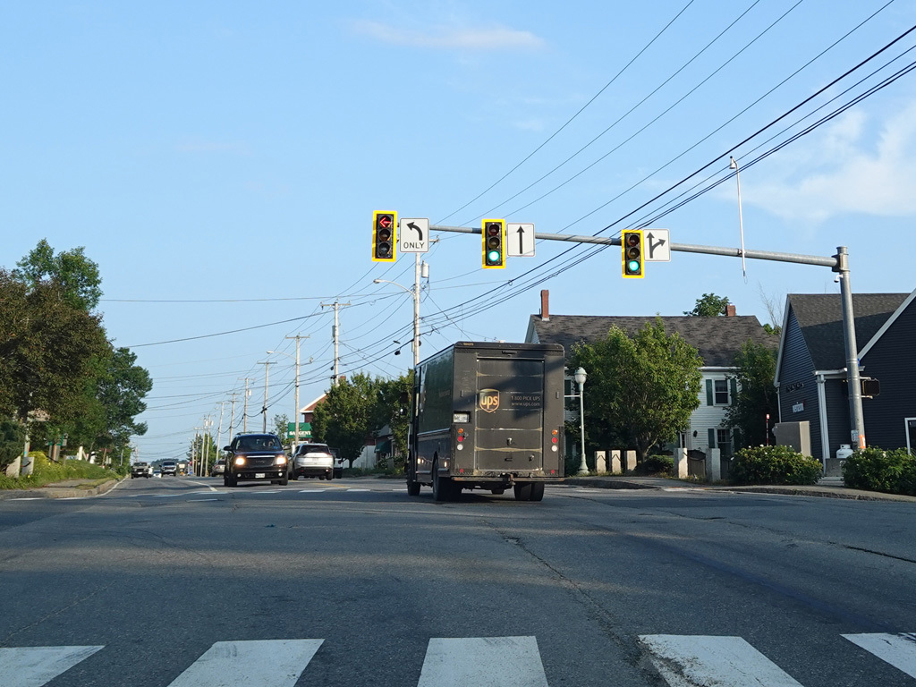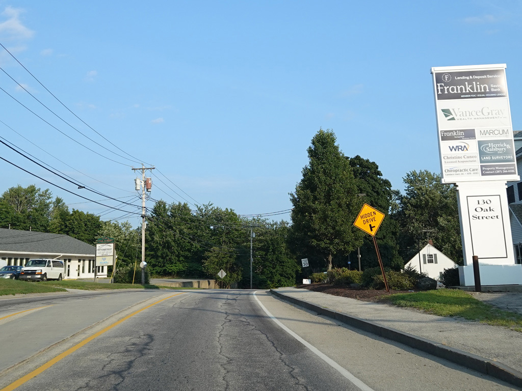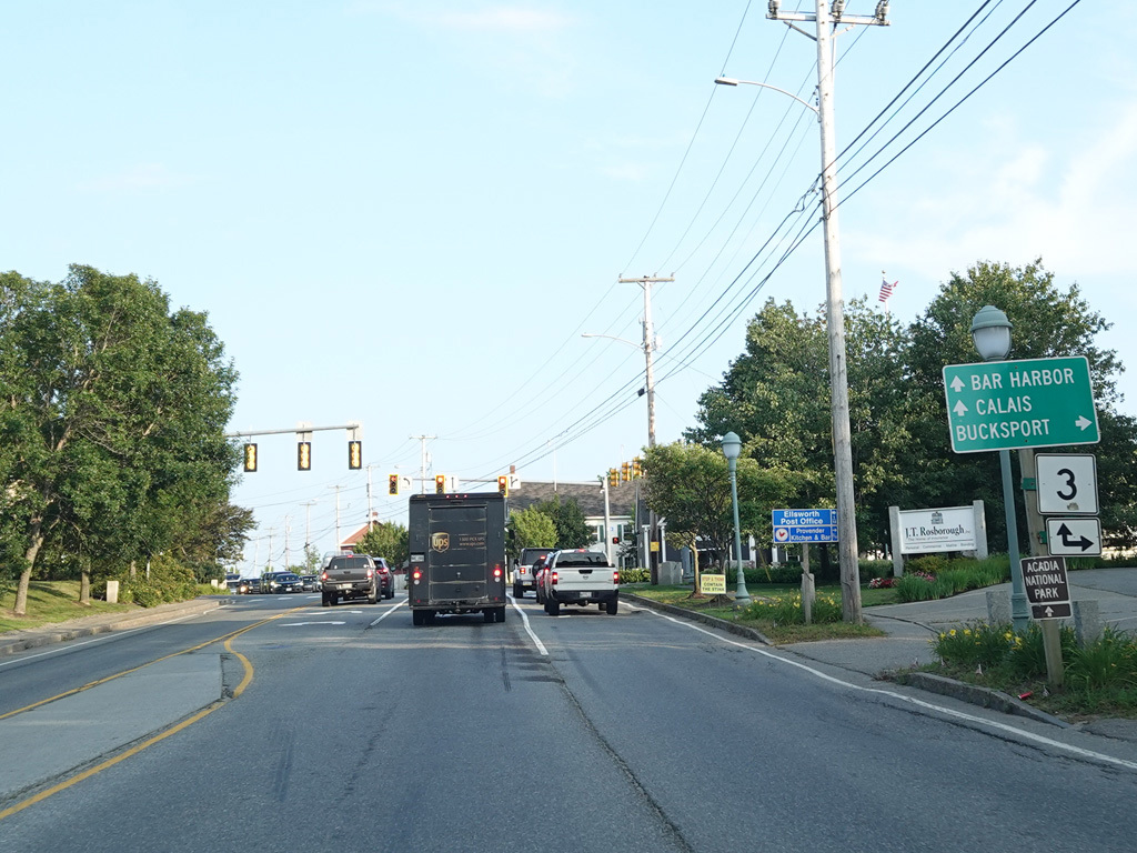 Bangor Road changes names to become State Street and then Oak Street as it heads into the downtown area of Ellsworth.