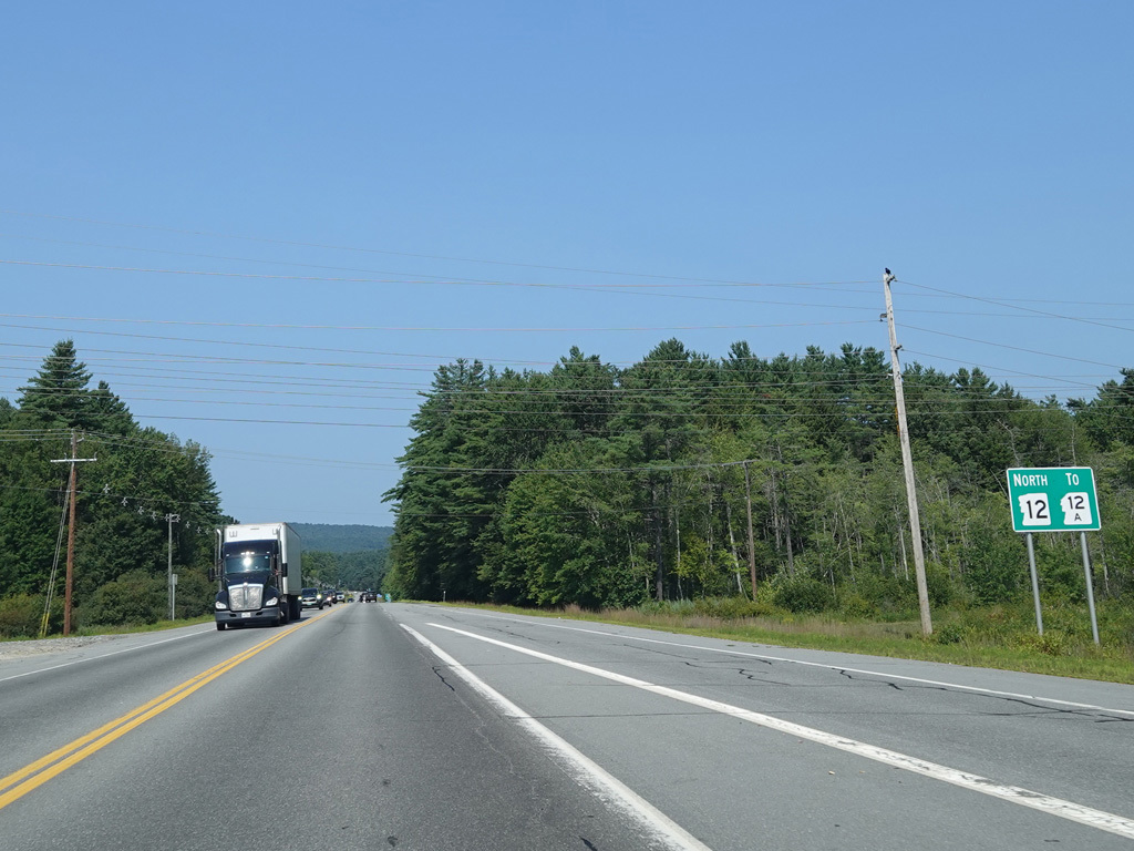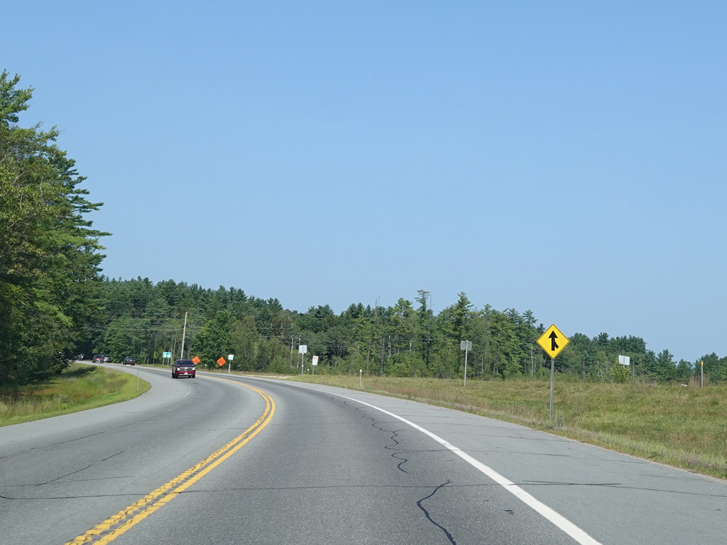 The super-2 ends, and NH 12 continues northwest as a surface road. There is an uncontrolled intersection at Corporate Drive and Wyman Road.