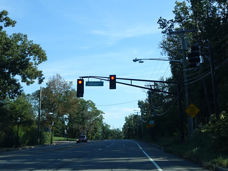 Approaching the South Mountain Reservation, South Orange Avenue becomes a divided highway. There is a traffic light at Cherry Lane and Brookside Drive.