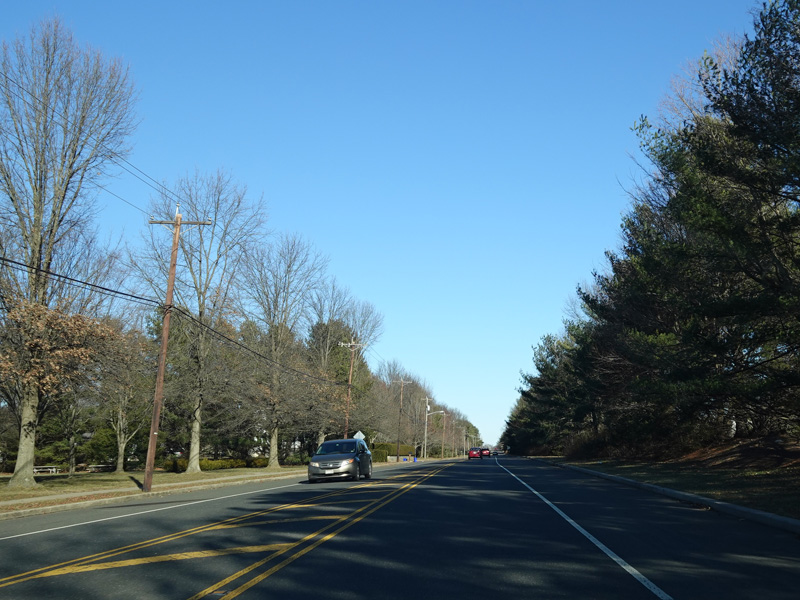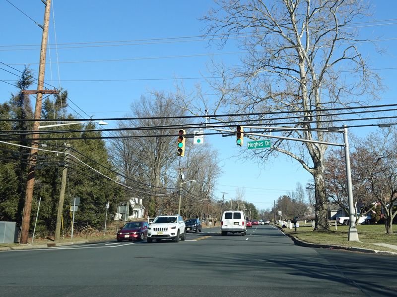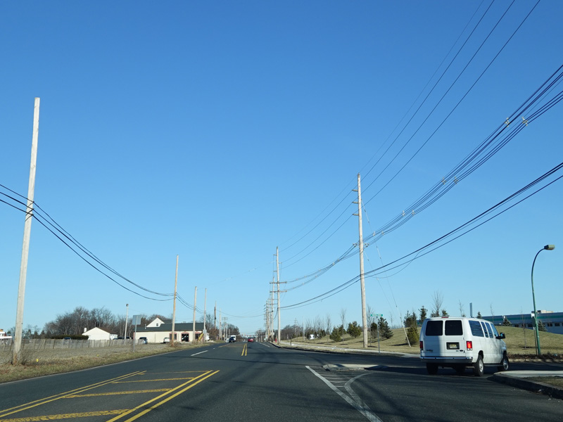 Edinburg Road has a grass median for a short distance in the area of Mercer County Community College. There is a traffic light with jughandles at the entrance to the campus.