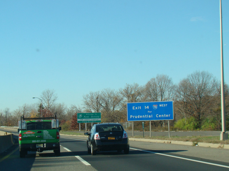 The exits on the turnpike extension are numbered as if they were exits from the mainline of the New Jersey Turnpike (I-95). The first exit, exit 14B, is for Jersey City and Liberty State Park.