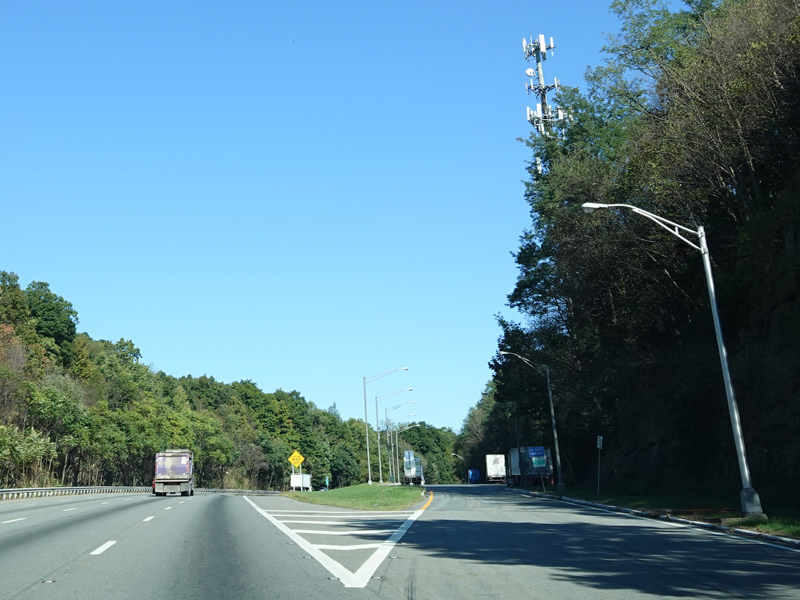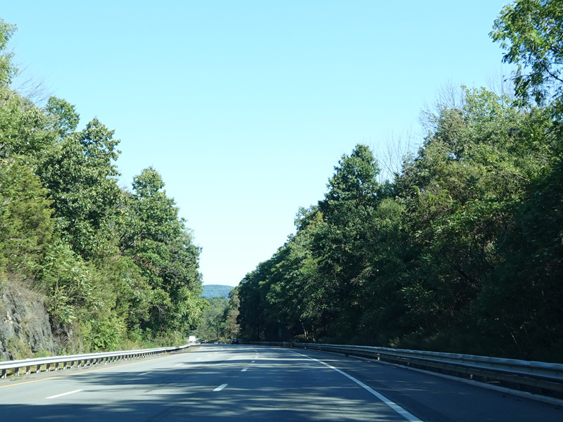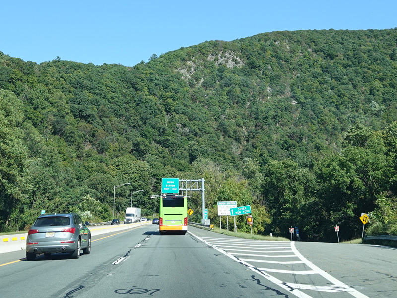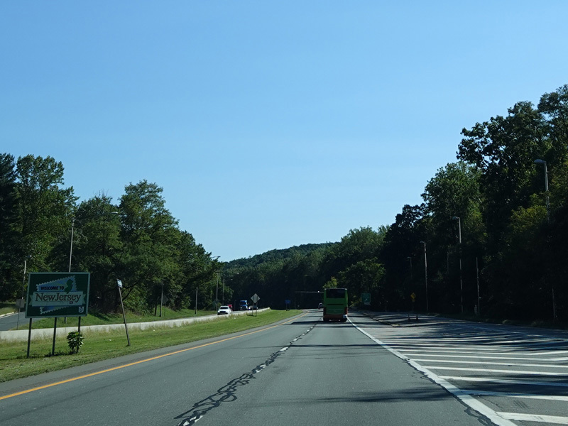 Welcome to New Jersey! There are a couple of unnumbered exits for the Delaware Water Gap, followed by a weigh station.