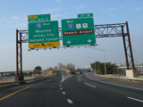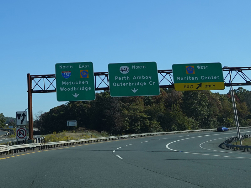 The ramp for exit 11 splits twice after the tollbooth. Bear right at the first split for the Garden State Parkway (NJ 444) north. Bear left at the second split for the Garden State Parkway (NJ 444) south. Continue straight ahead for US 1, US 9, and NJ 440.