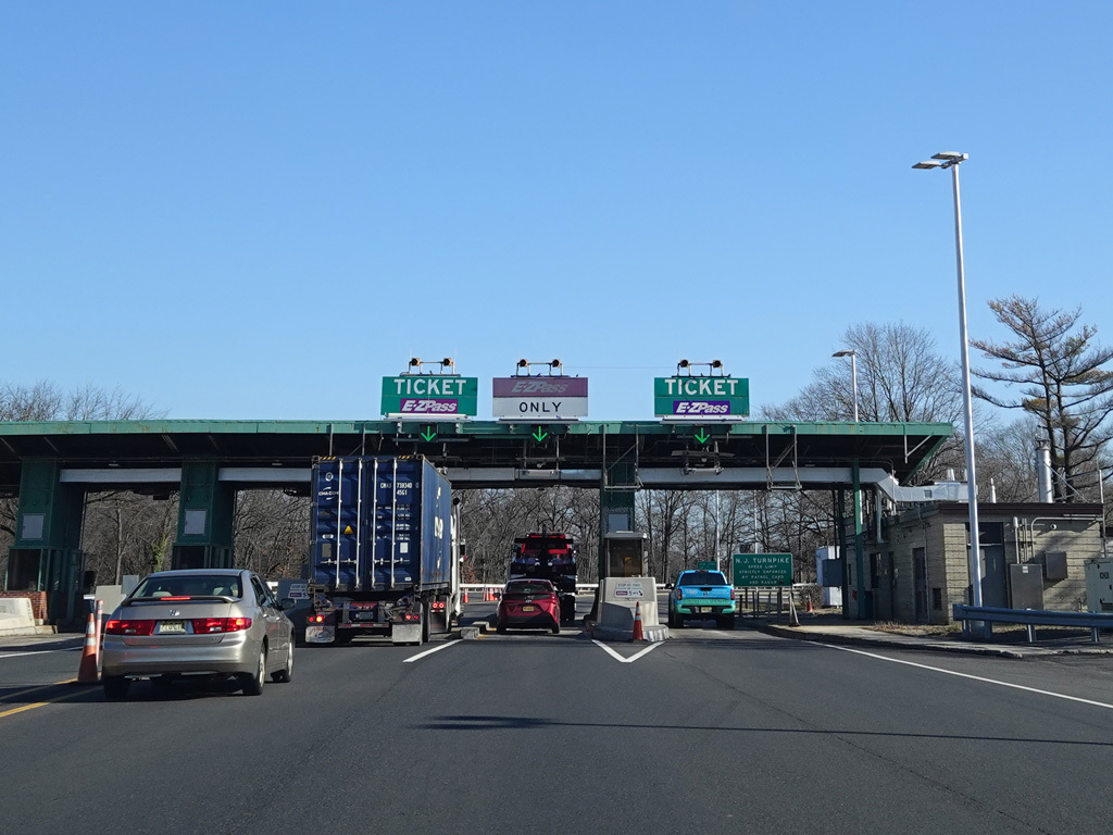 The ramp onto the turnpike at exit 3 splits after the toll. Bear left to go north or right to go south.