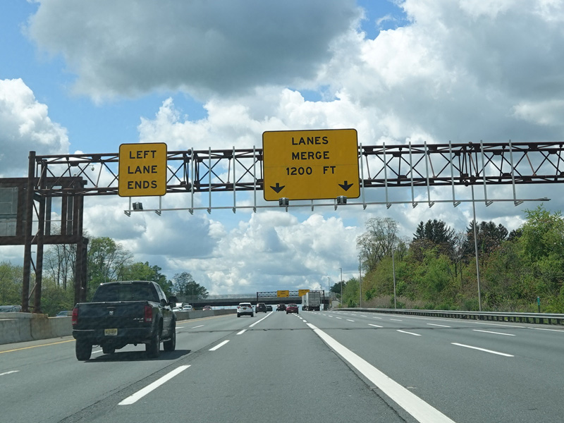 Straight ahead, the turnpike ends and merges into I-295. There is a sign to tell motorists that there is an exit from I-295 for North Broadway (NJ 49) east immediately after the merge.