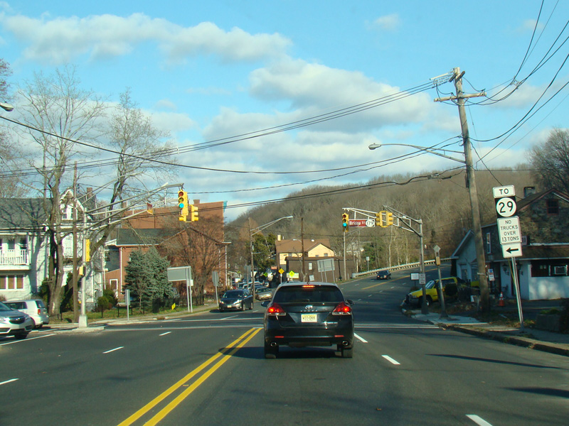 NJ 165 begins at NJ 29 in Lambertville. There is a median continuing from NJ 29 which ends immediately, leaving NJ 165 as a four-lane undivided road.