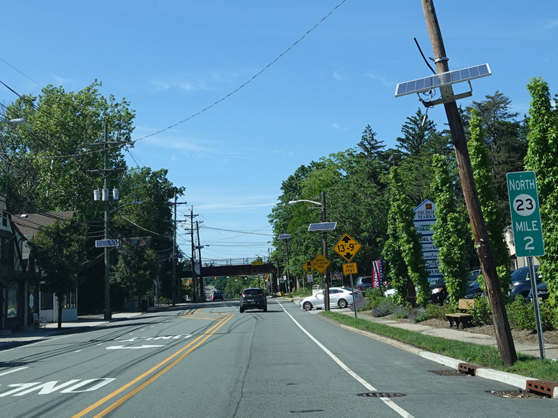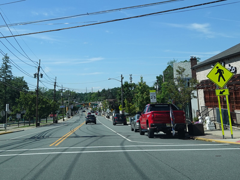 Newark Pompton Turnpike runs north through Little Falls as a two-lane undivided road.