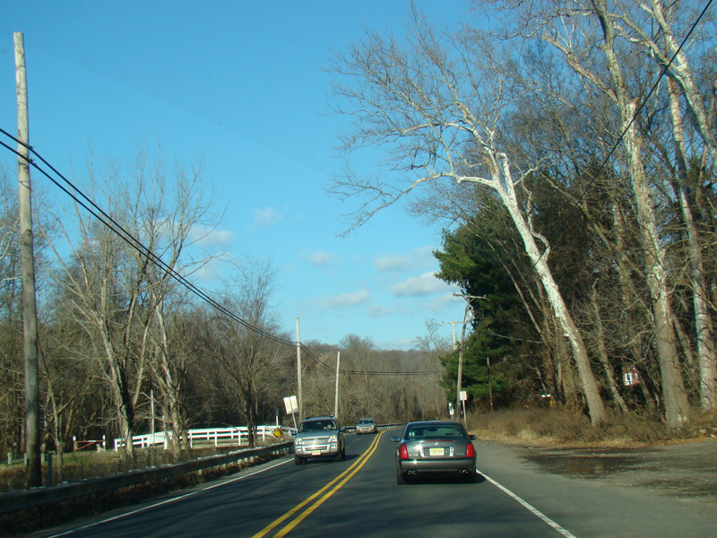 Welcome to the Township of Kingwood! This section of NJ 29 goes through rural surroundings. The Delaware River becomes visible through the trees in one area.