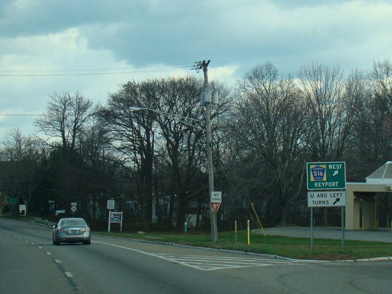 There is a traffic light with jughandles at Middle Road (CR 516).