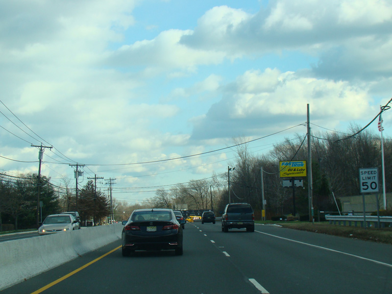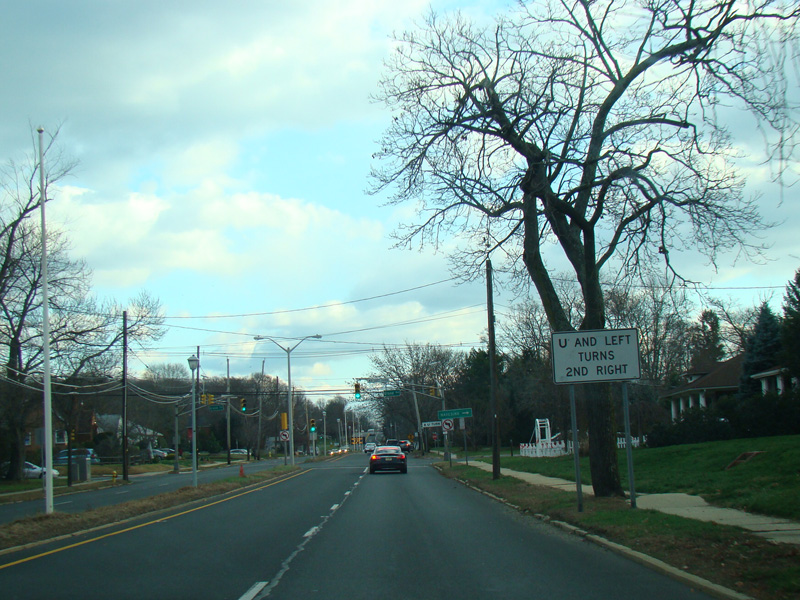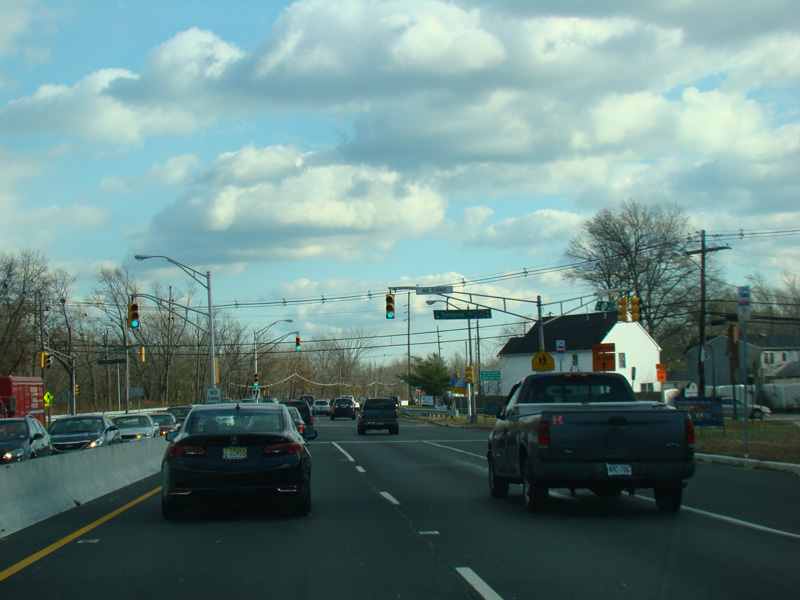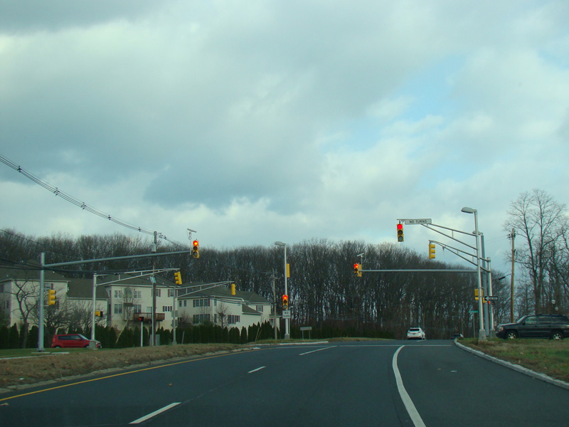 There is a traffic light at Stone Road (CR 6). No turns are allowed when travelling in this direction.
