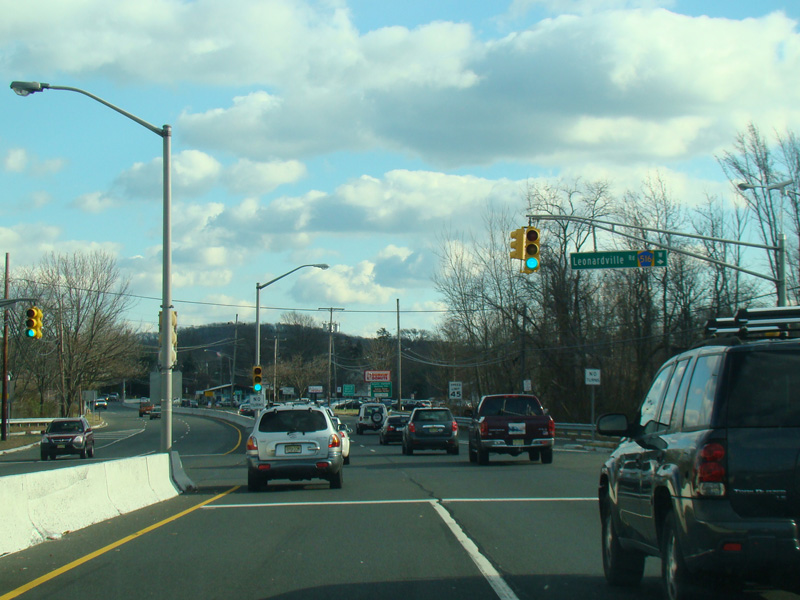 Leonardville Road (CR 516) begins on the right at a traffic light.