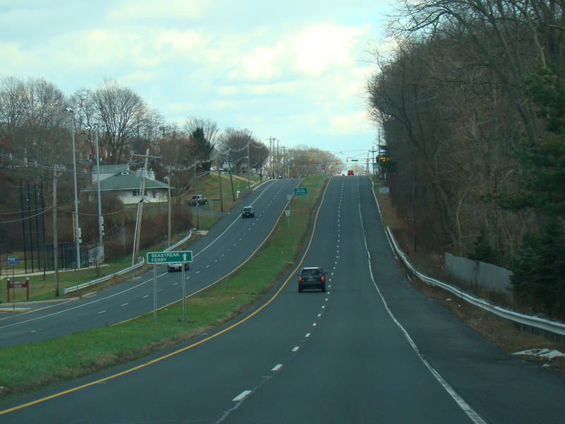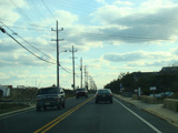 In Long Branch, Ocean Avenue widens to become a four-lane divided road called Ocean Boulevard. There is a traffic light at Avenel Boulevard.