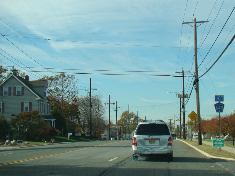 There is a traffic light at CR 643. Turn left onto Grove Street to go south or right onto Grove Avenue to go north.