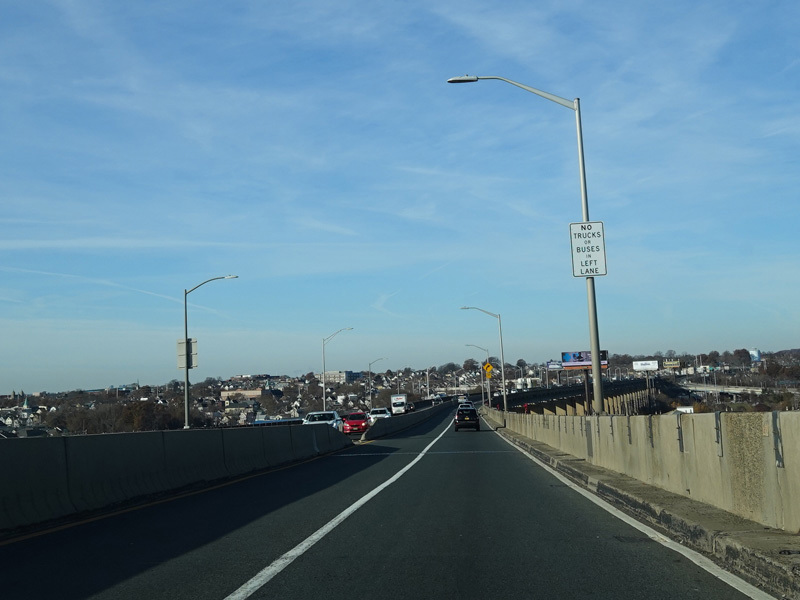 NJ 440 narrows down to two lanes and two additional lanes merge in from the Garden State Parkway (NJ 444).