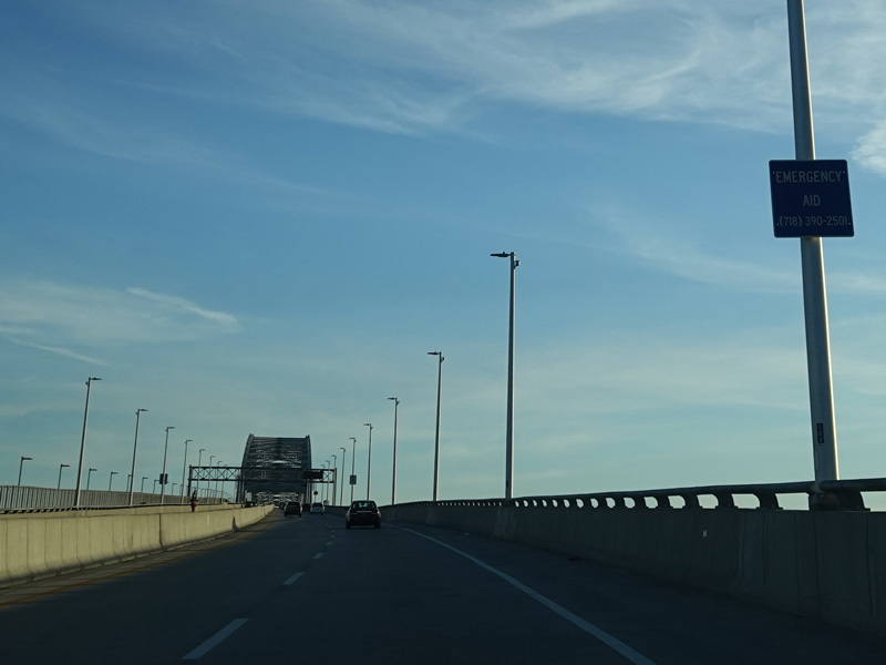 These pictures show the Bayonne Bridge as it appeared while construction work was in progress to raise the roadway so that tall ships could pass under the bridge. At the time, only half of the new roadway was open.