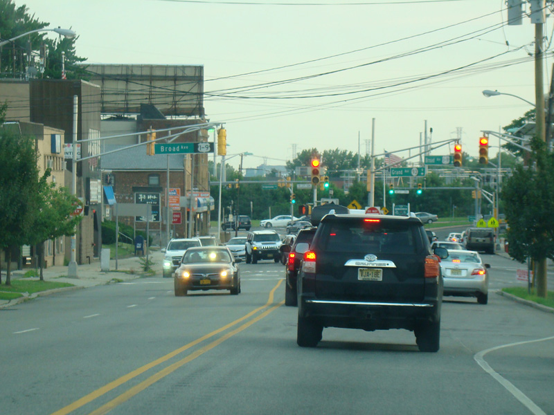 There is a traffic light at Broad Avenue. Turn left to stay on US 1/US 9.